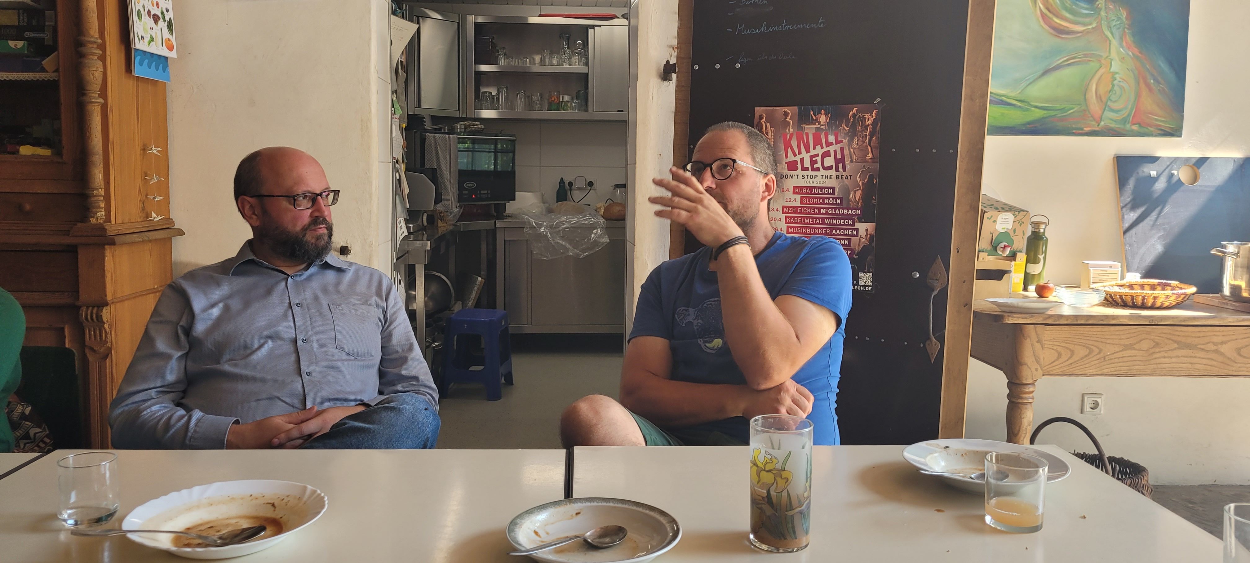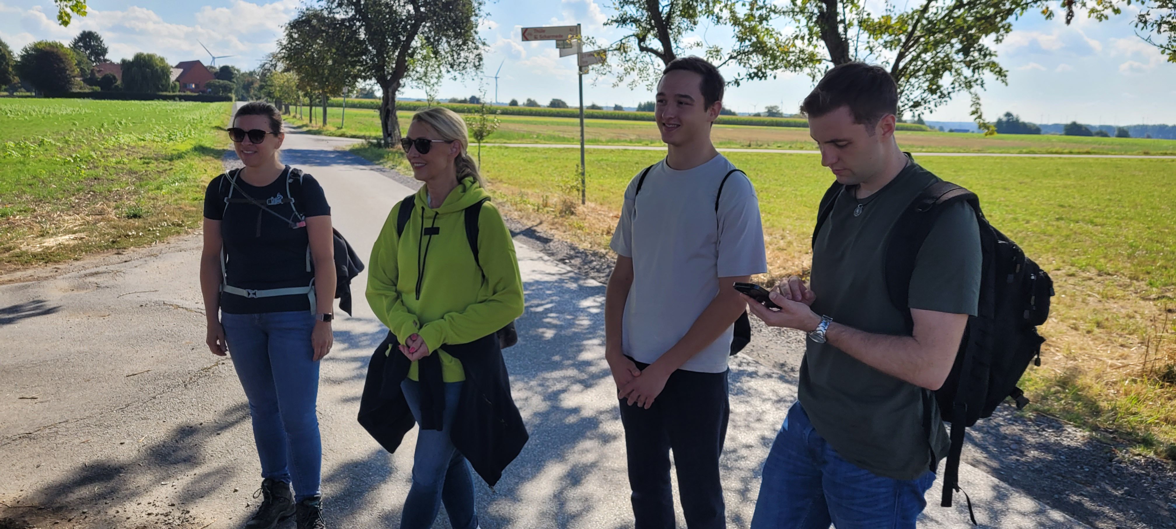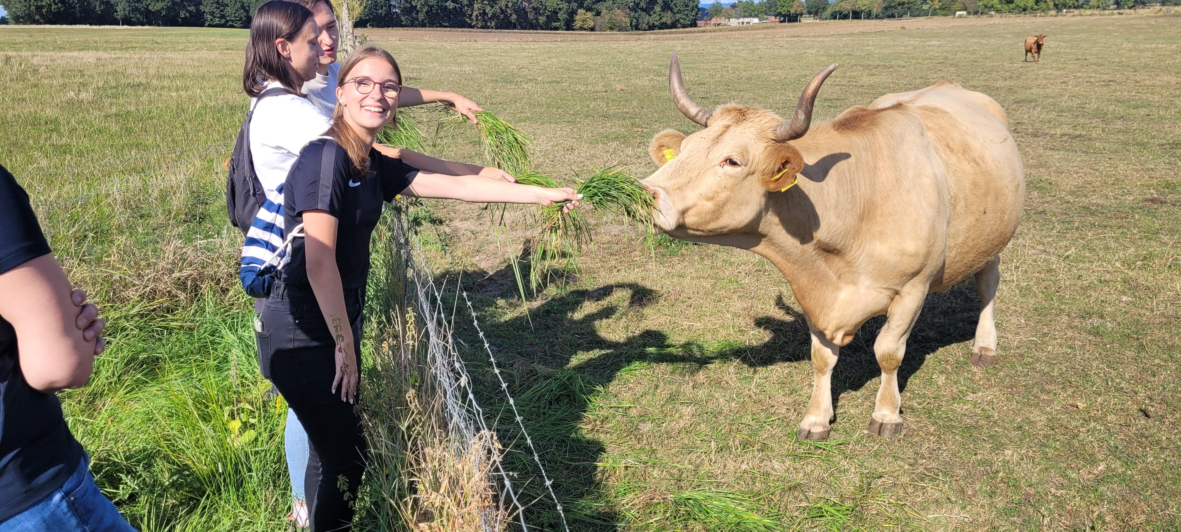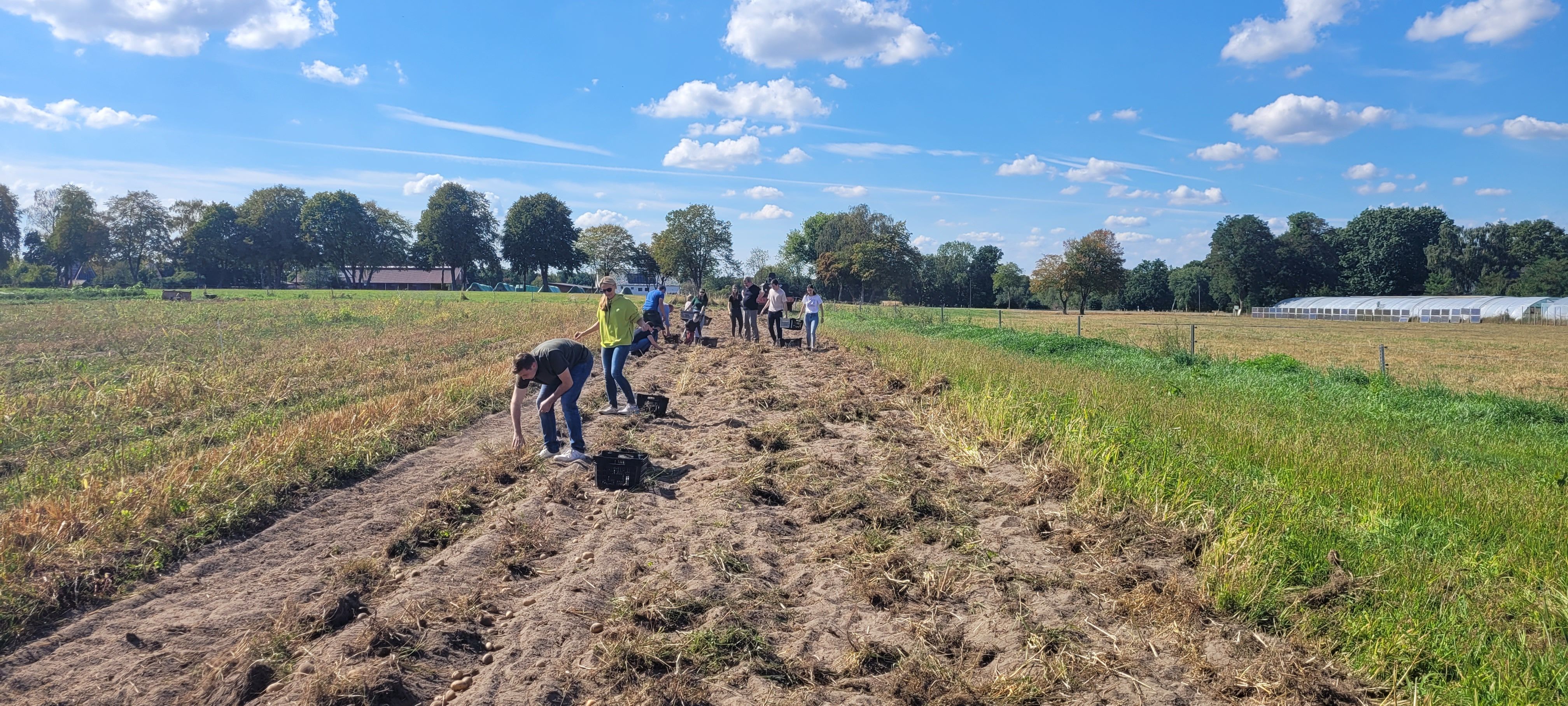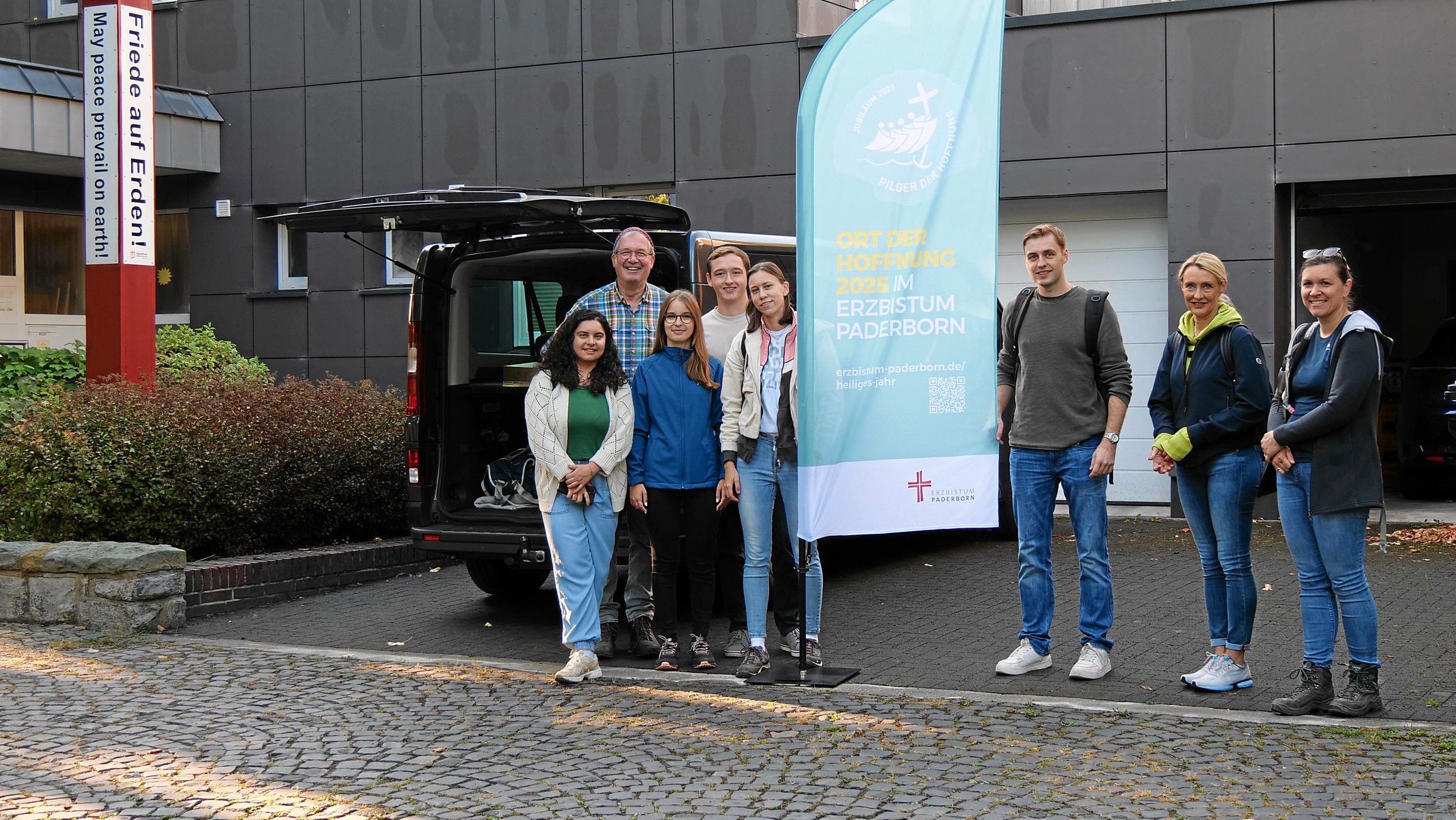 Zu zehnt hatten wir uns auf den zweiten Pilgerweg der Hoffnung im Heiligen Jahr 2025 gemacht. Wir trafen uns am Bahnhof in Salzkotten und machten uns mit kleinen Impulsen zur Schöpfung auf den Weg zum Vaußhof in Scharmede. Es war ein Geschenk, bei strahlendem Sonnenschein durch die Schönheit und Weite der Natur laufen zu können und dabei im lebendigen Austausch zu sein. Auf dem Vaußhof angekommen, empfingen uns Anja und Marius mit einigen ihrer Kinder mit einer leckeren Gulasch- und Kürbissuppe. Schnell waren wir im lebendigen Austausch über nachhaltiges Leben, Wirtschaften und Arbeiten. Der Ort, an dem wir aßen, eine alte Deele mit einem beeindruckenden Pflasterboden aus Fischgrätenmuster – Handarbeit – uralt. Hier begegneten sich Vergangenheit, Gegenwart und – im bewussten Umgang mit den Gaben der Schöpfung – Zukunft. Nach dem Mittagessen ein Gang durchs gut sortierte Hof-Café und dann ging’s aufs Feld, wo wir beim Kartoffellesen halfen. Die sauberen Kartoffeln aus dem Trockenen, sandigen Boden „ernten“ zu dürfen, ein echtes Glücksgefühl. Danach ging Marius mit uns durch die Weite des Geländes, erzählte von der Geschichte des Hofes und von der SoLawi Vaußhof e.G., einer eingetragenen Solidarischen Genossenschaft. Als wir schließlich an einer großen Kuhweide standen, ließ uns Hedwig, eine Tochter von Marius und Anja wissen: „Und dort hinten, der schwarze Bulle, der heißt Klara und die Kuh daneben ist Hedwig, meine Lieblingskuh!“ Beeindruckt von all dem, was in den vergangenen zwei Jahrzehnten gewachsen war, kamen mir innere Bilder aus Vidovice ins Herz. Dort war Marius im Jahr 1996 mit uns im ersten Aufbaucamp gewesen und mit einer Träne im Auge teilte er mit uns: „Wisst ihr, dieses Camp damals, das war für mich ein Meilenstein im Leben. Irgendwie fehlte bei einem der vielen Bullis, mit denen wir nach Bosnien gefahren sind, ein zweiter Fahrer. Und dann sagte Meinolf zu mir: ‚Das kannst du doch machen - oder?‘ Dieser Augenblick, in dem mir so viel Vertrauen entgegen kam, hat etwas in mir geboren werden lassen, was ich zeitlebens nicht verloren habe: Mut.“