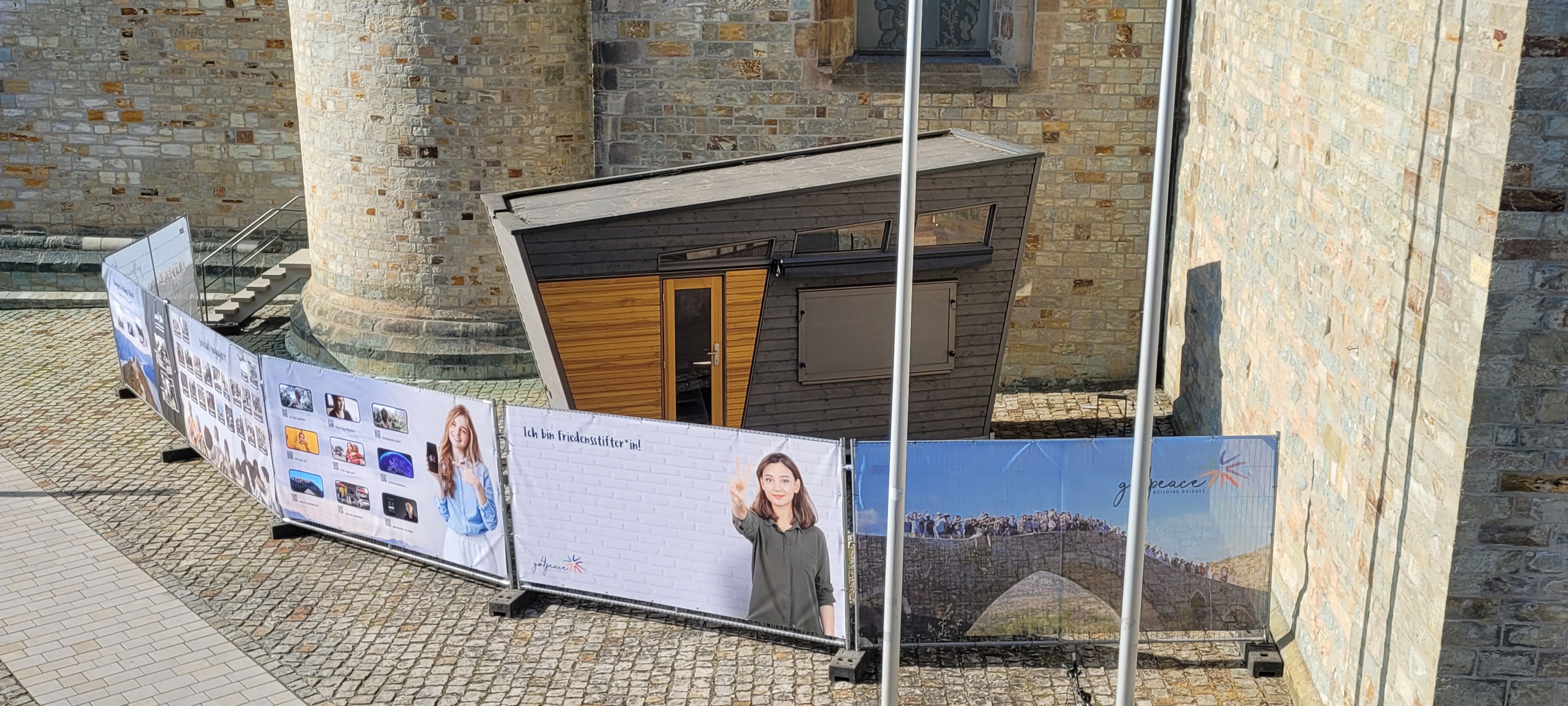 Tag für Tag setzte sich die Tagesgruppe am Tiny House aus neuen Personen zusammen – jung und alt machten sich auf den Weg, um Menschen anzusprechen und für den Frieden zu begeistern. Und jeder einzelne nahm Erfahrungen und Begegnungen mit nach Hause, die geschenkt worden waren – ob beim Verteilen der Giveaways oder beim Kahoot-Quiz auf dem großen Bildschirm des Tiny Houses, ob beim Gespräch im Tiny House oder beim Herstellen von Armbändern, ob im Gespräch über den Projekt-Horizont „navi4life“ oder beim Anbieten kleiner Schokoladen mit der Aufschrift „Schön, dass Du da bist!“