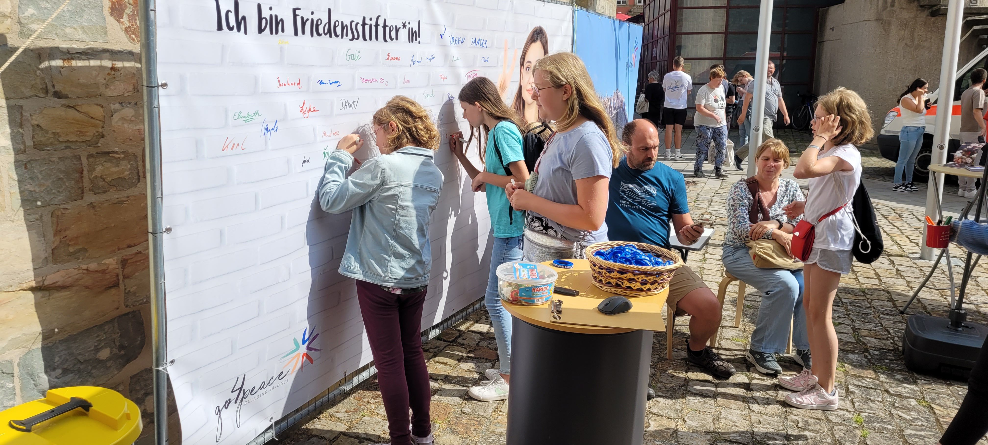 Wie schön, am Ende eines Tages immer wieder kurze Reaktionen lesen zu dürfen: „Hallo, ich fand es heute wieder extrem schön! Der ganze Tag hat mir sehr viel Freude bereitet!“ oder: „Der Tag hat mir viel Spaß gemacht und ich hab mich neu ausprobieren dürfen! Ich hab’s geschafft, auf fremde Leute zuzugehen!“ oder: „go4peace in Paderborn hat uns sehr gut gefallen! Die tolle Organisation und Umsetzung durch Euch haben wir wie die vielen, vielen Besucher sehr genossen. Vielen Dank, dass wir etwas unterstützen durften. Wir hatten wirklich schöne Begegnungen. Und für meinen Freund war es eine ganz neue Erfahrung!“