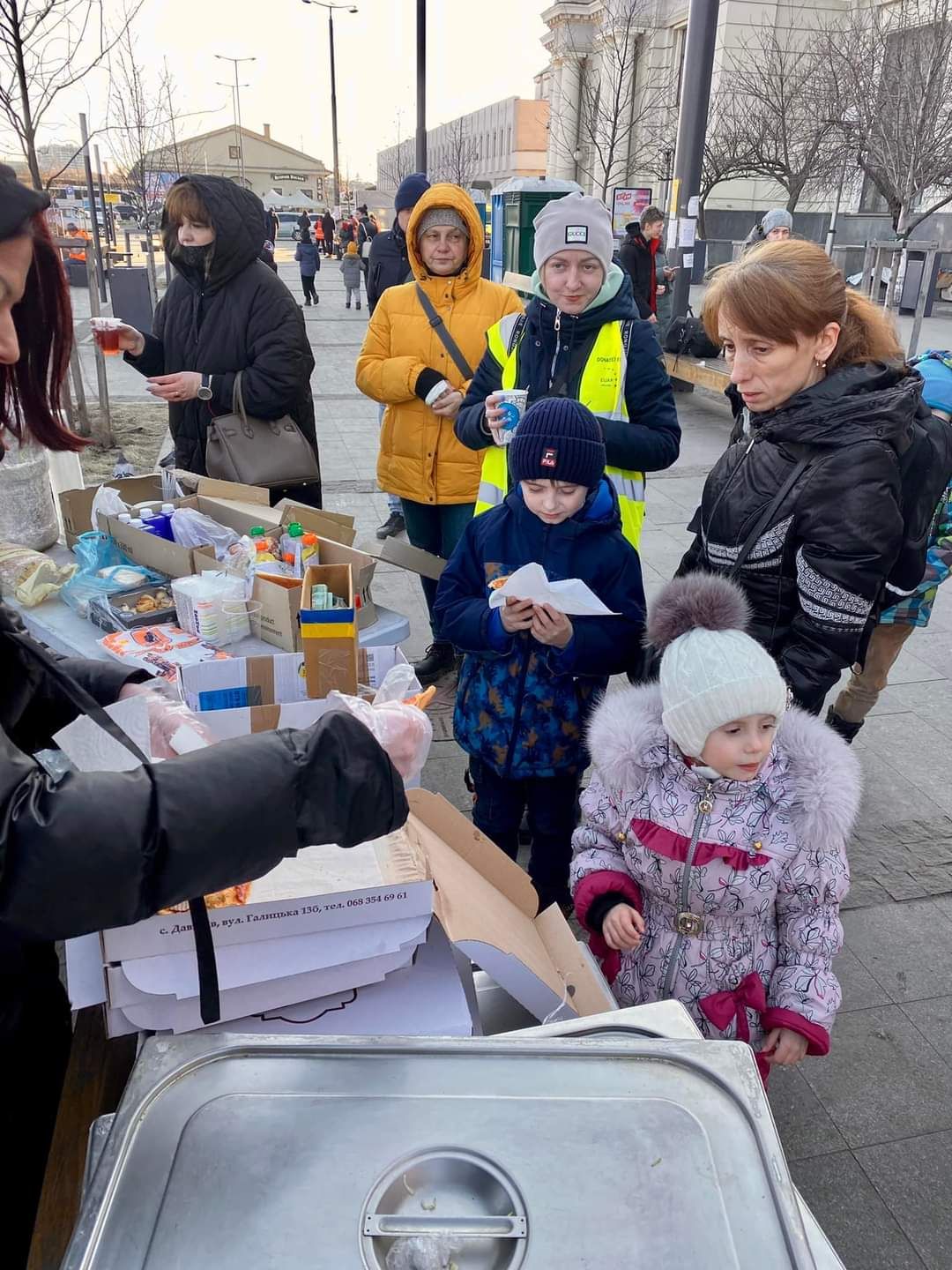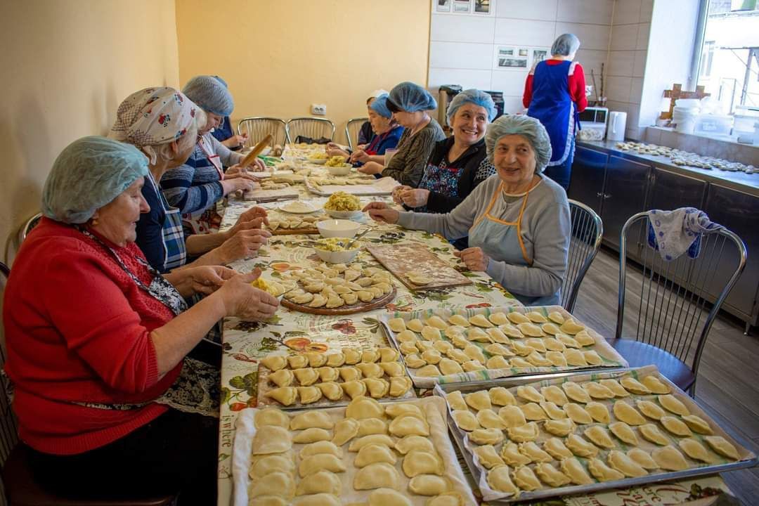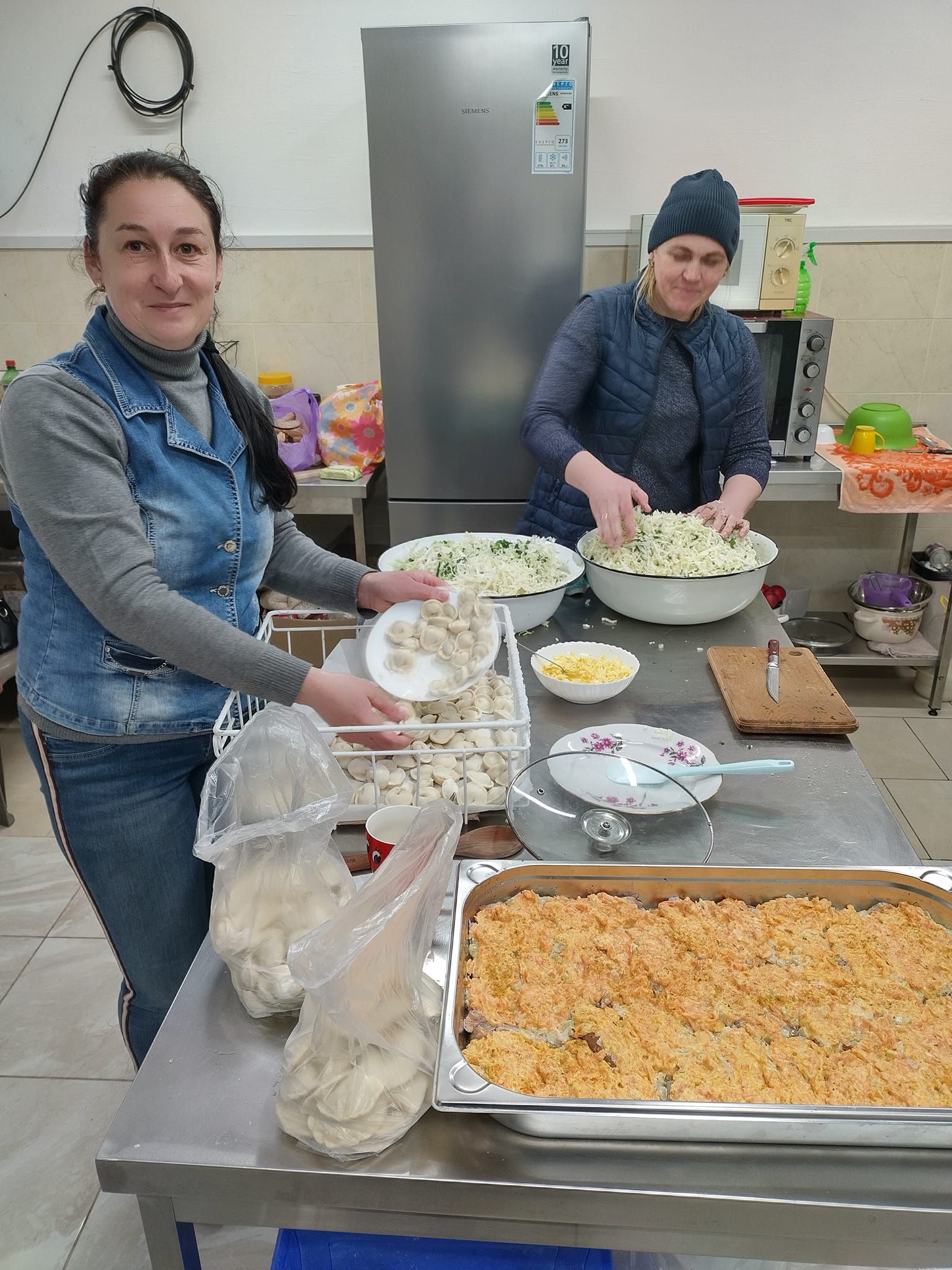Die Mitarbeiter*innen der Ukrainischen Sozialakademie haben in den Dörfern Sataniv, Kamianets-Podilskyj, Netishyn, Starokonsantyniv, Shepetivka und Khmelnztskyj (ca. 200 Kilometer südwestlich von Kiew) 6 Küchen mit Ausrüstung in die Räume die von griechisch-katholischen Pfarrgemeinden zur Verfügung gestellt worden sind, eingebaut. In diesen Küchen arbeiten täglich Teams von Freiwilligen aus den Pfarrgemeinden. Pro Küche bereiten sie täglich Essen für ca. 1000 Leute vor und verteilen die warmen Mahlzeiten an Flüchtlinge und an andere Bedürftige in den sechs Stadtgebieten.