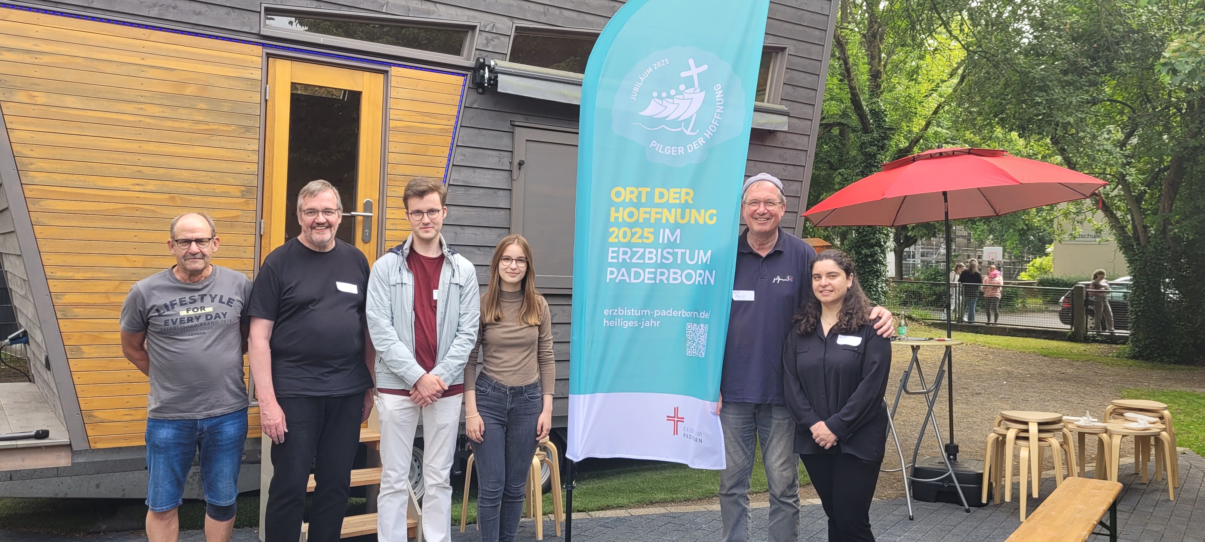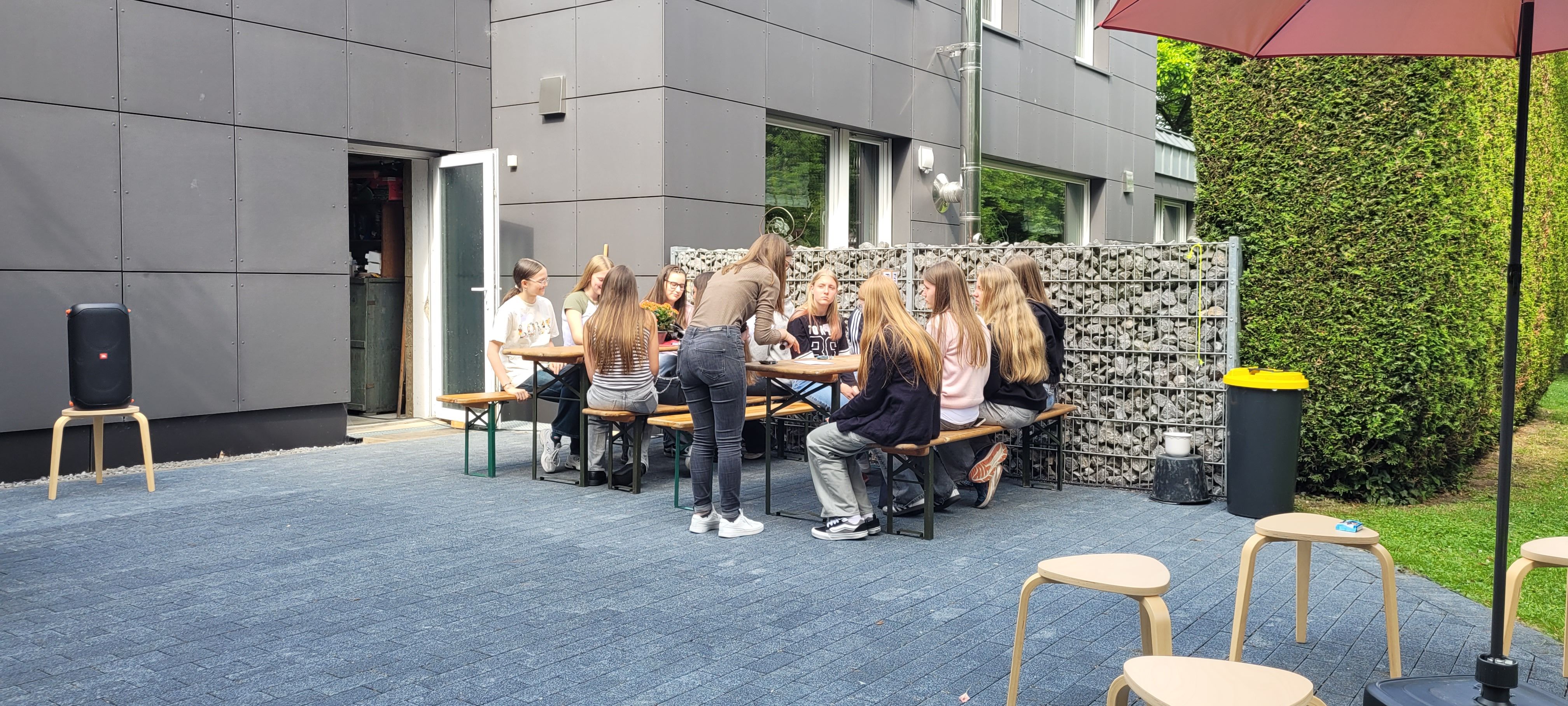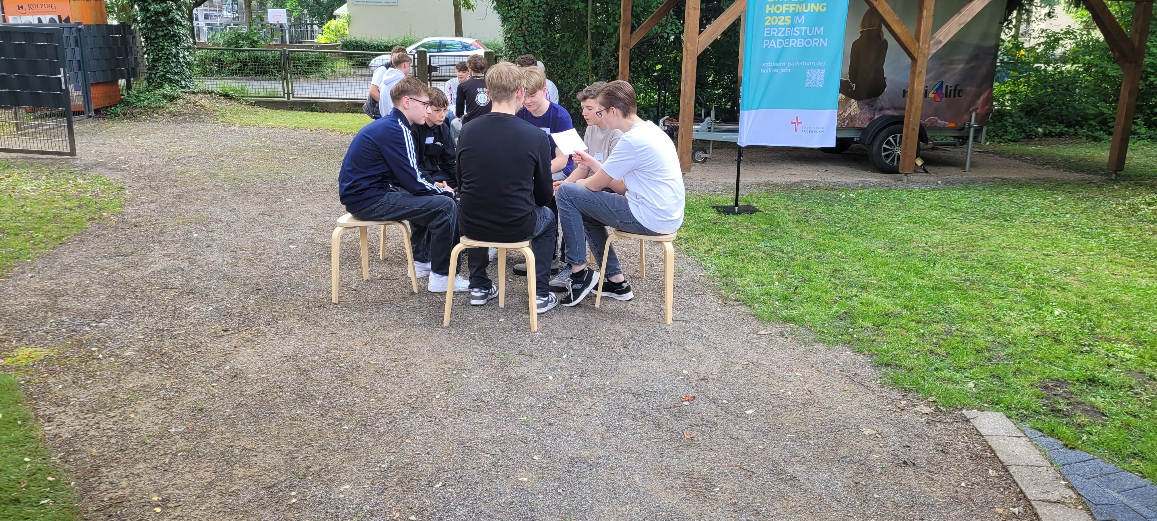 Knapp 50 Firmbewerber*innen aus der Pfarrei Heilig Kreuz waren der Einladung gefolgt, am Sonntag, dem 01. Juni ans Tiny House im Pfarrgarten zu kommen. „Ich freue mich total, neue Leute kennen zu lernen, denn sonst bin ich eigentlich fast nur in meiner Clique unterwegs“, ließ uns ein Mädchen wissen. Nach bunten Aufstellungsspielen hatte alle Jugendlichen in kleinen Gruppen die Chance, mit Hilfe eines Gesprächsleitfadens in Austausch zu kommen. „Was bewegt und beschäftigt dich zurzeit in deinem Leben? – Was bringt Freude in dein Leben?“ Paulina und Artemida hatten sich bunte Fragen überlegt. Bevor es dann Cola und gegrillte Würstchen gab, stellte Paulina Mitgliedern aus dem Firmteam Fragen nach ihrem Glauben. Nach zwei Stunden ging ein spannender, froher und abwechslungsreicher Nachmittag zu Ende. „So was müssten wir öfter machen!“ meldeten einige der Jugendlichen beim Abschied zurück.
