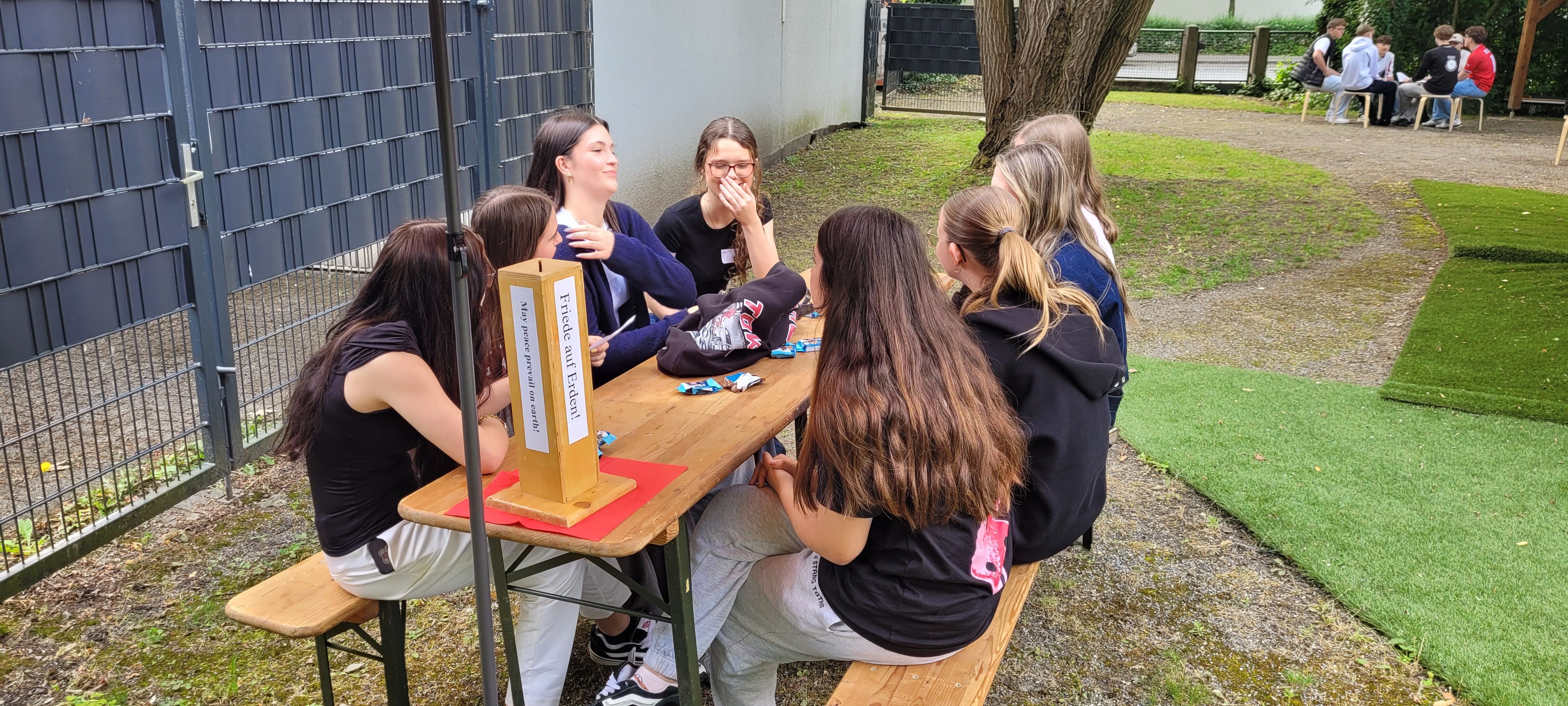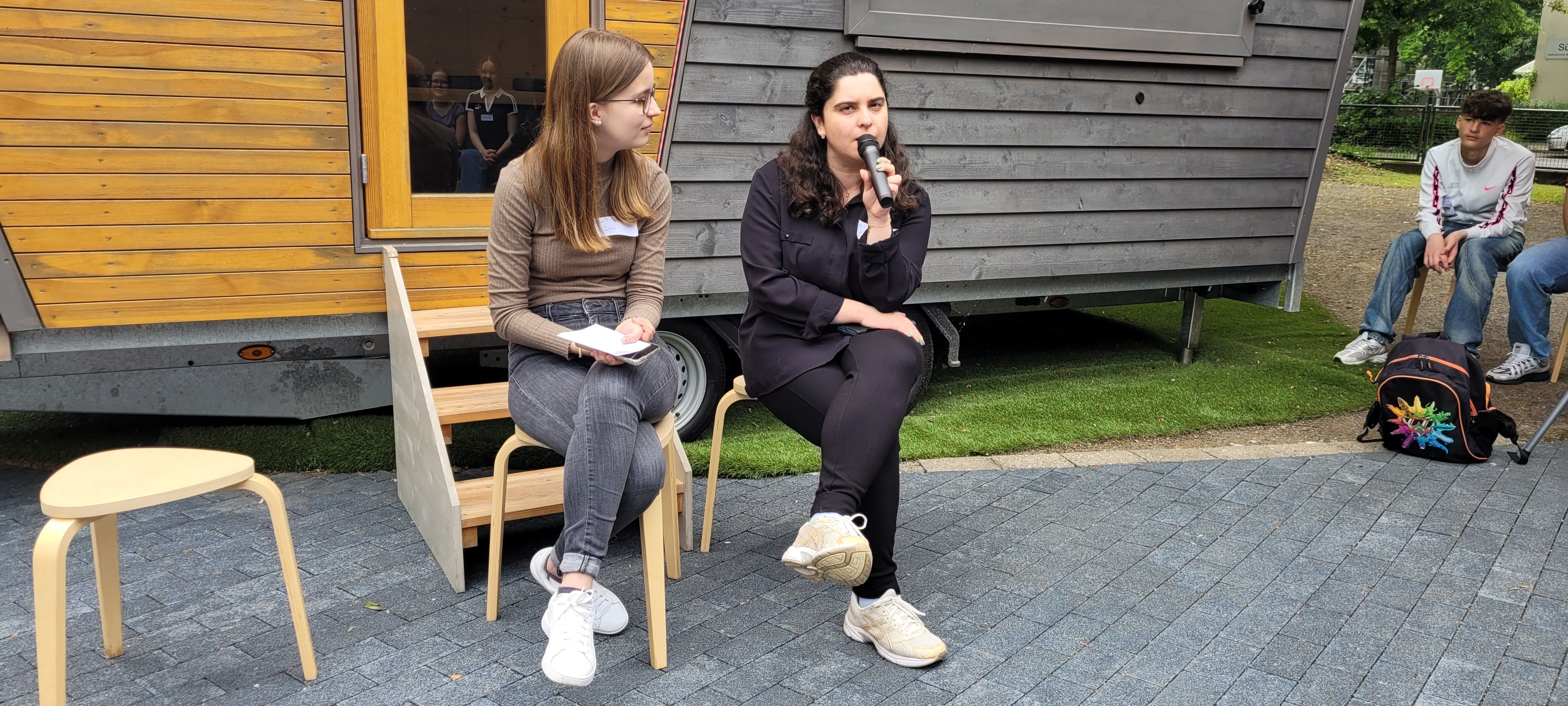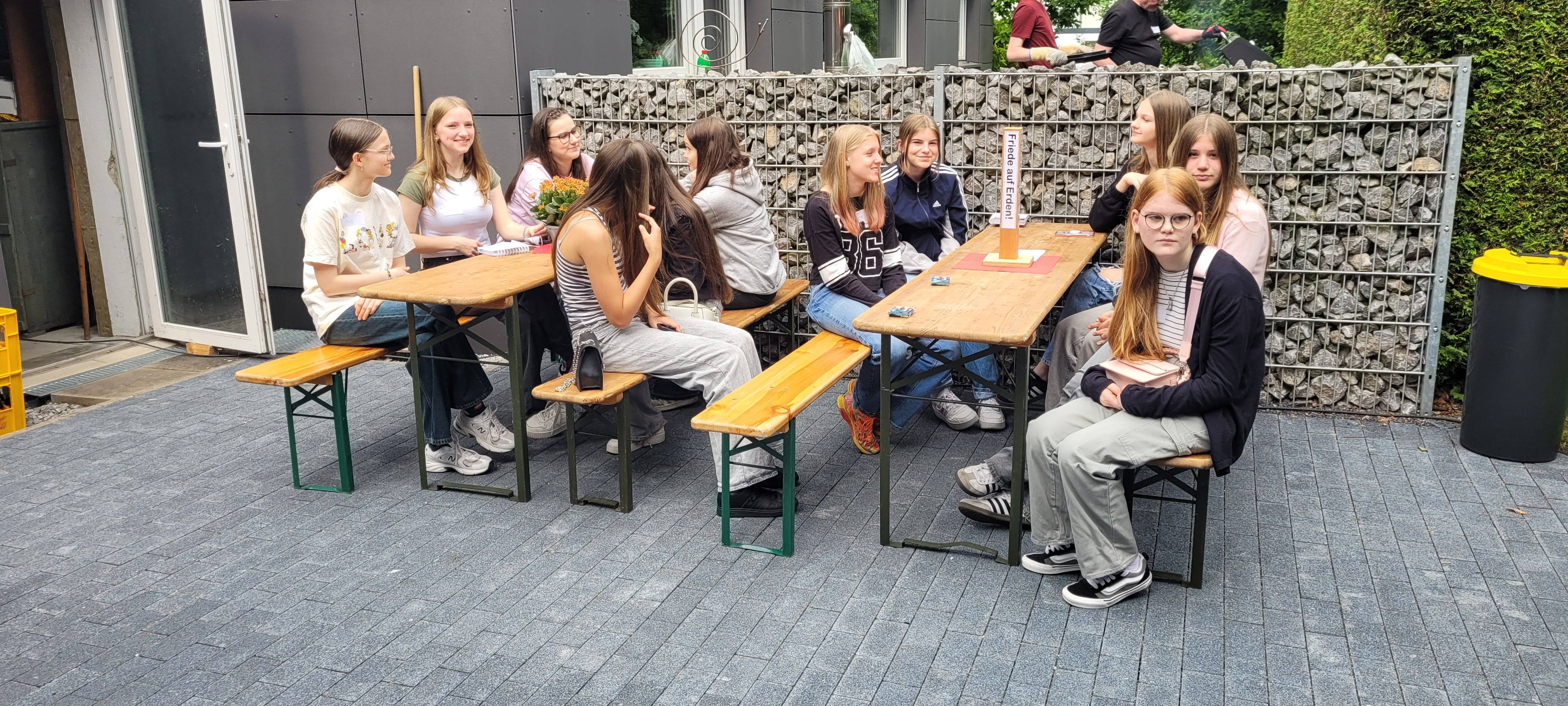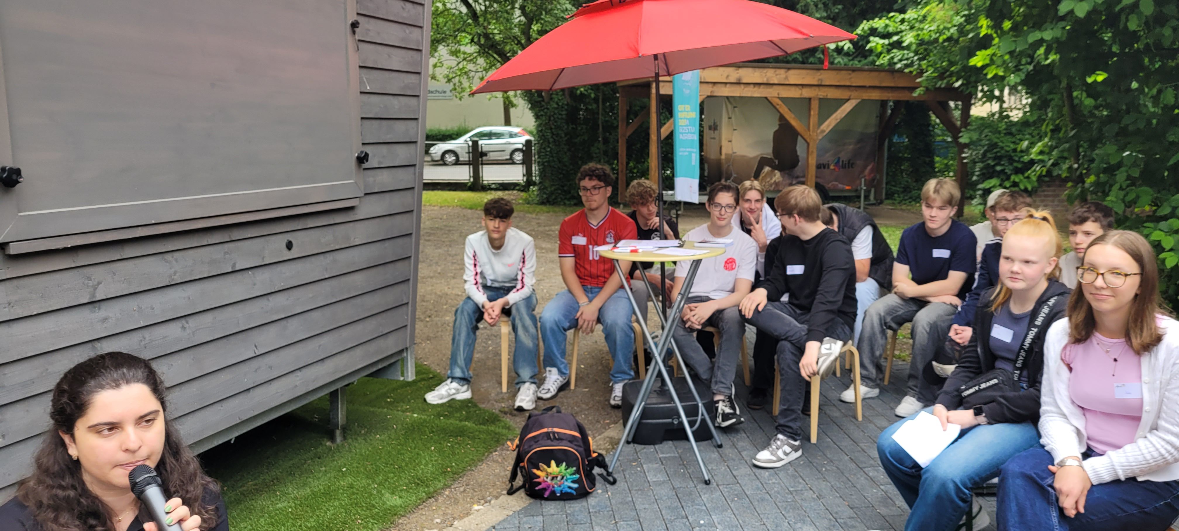 Knapp 50 Firmbewerber*innen aus der Pfarrei Heilig Kreuz waren der Einladung gefolgt, am Sonntag, dem 01. Juni ans Tiny House im Pfarrgarten zu kommen. „Ich freue mich total, neue Leute kennen zu lernen, denn sonst bin ich eigentlich fast nur in meiner Clique unterwegs“, ließ uns ein Mädchen wissen. Nach bunten Aufstellungsspielen hatte alle Jugendlichen in kleinen Gruppen die Chance, mit Hilfe eines Gesprächsleitfadens in Austausch zu kommen. „Was bewegt und beschäftigt dich zurzeit in deinem Leben? – Was bringt Freude in dein Leben?“ Paulina und Artemida hatten sich bunte Fragen überlegt. Bevor es dann Cola und gegrillte Würstchen gab, stellte Paulina Mitgliedern aus dem Firmteam Fragen nach ihrem Glauben. Nach zwei Stunden ging ein spannender, froher und abwechslungsreicher Nachmittag zu Ende. „So was müssten wir öfter machen!“ meldeten einige der Jugendlichen beim Abschied zurück.