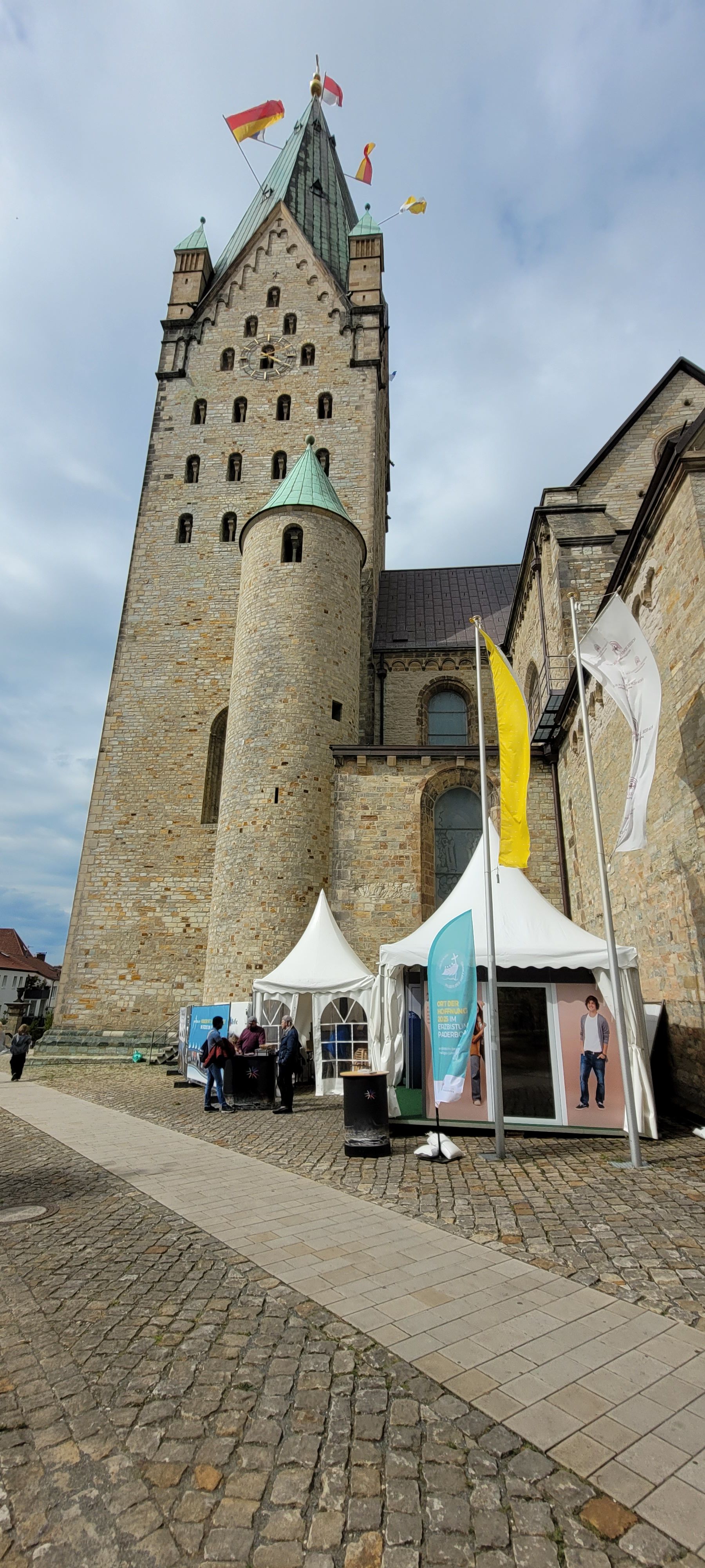 We were at the Cathedral Tower in Paderborn during the Libori festival (July 26 – August 3, 2025) with the experience course “navi4life – Navigate Yourself into Life!”. Archbishop Dr. Udo Markus Bentz smiled and said: “You are really standing in the wind here!” Yes, it is the windiest corner of the Cathedral – and many Libori pilgrims were “blown” past us. More than 180 young people, adults, and also children already walked the 10-minute course and were excited. A young woman said: “I found my way! – You really encouraged me. Keep going!” A priest added: “This is not only for young people – I also got new ideas for my life.” A superintendent said after walking through the four rooms with his wife: “You created a place here at the Libori festival where people can think about their own life. Impressive. Thank you!”
