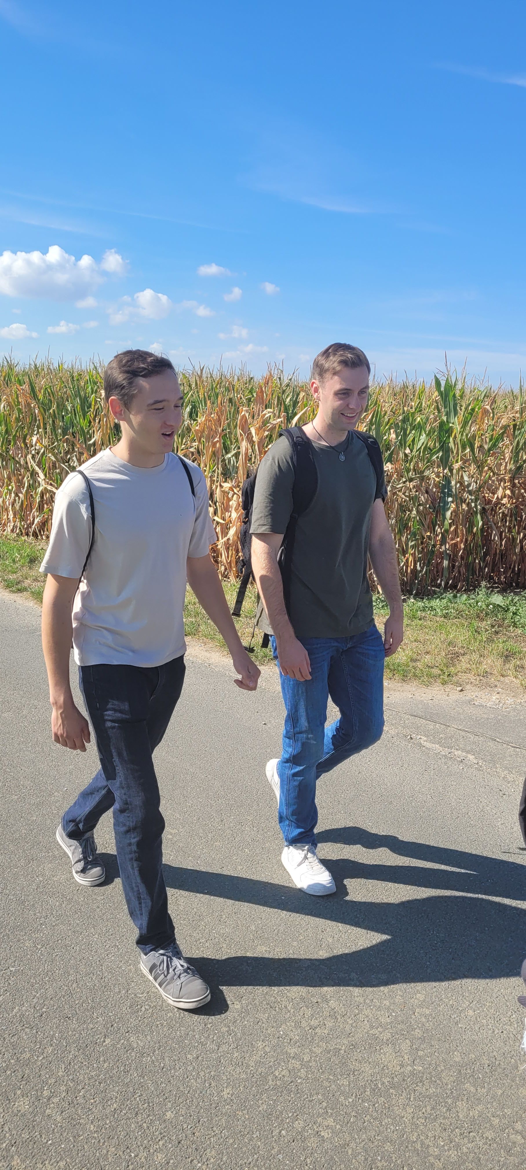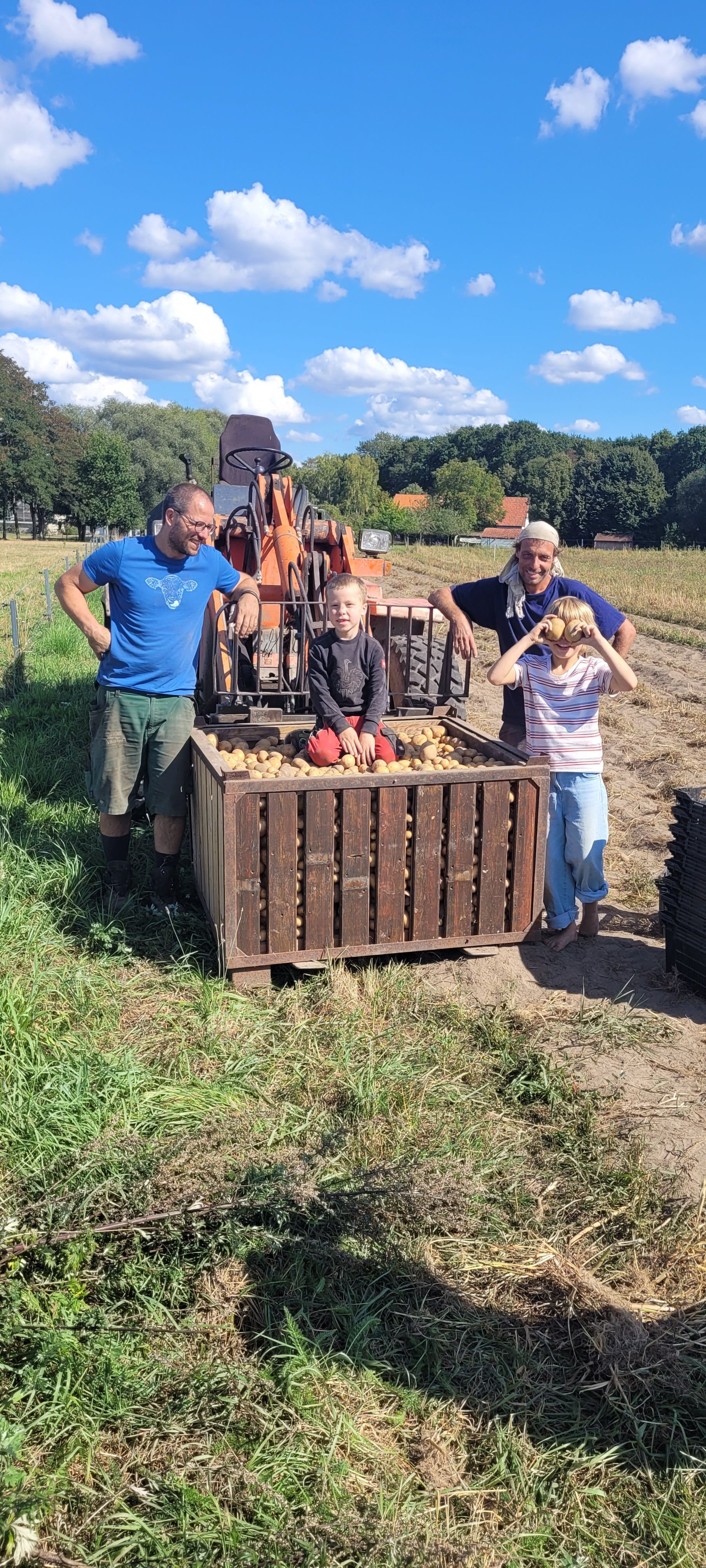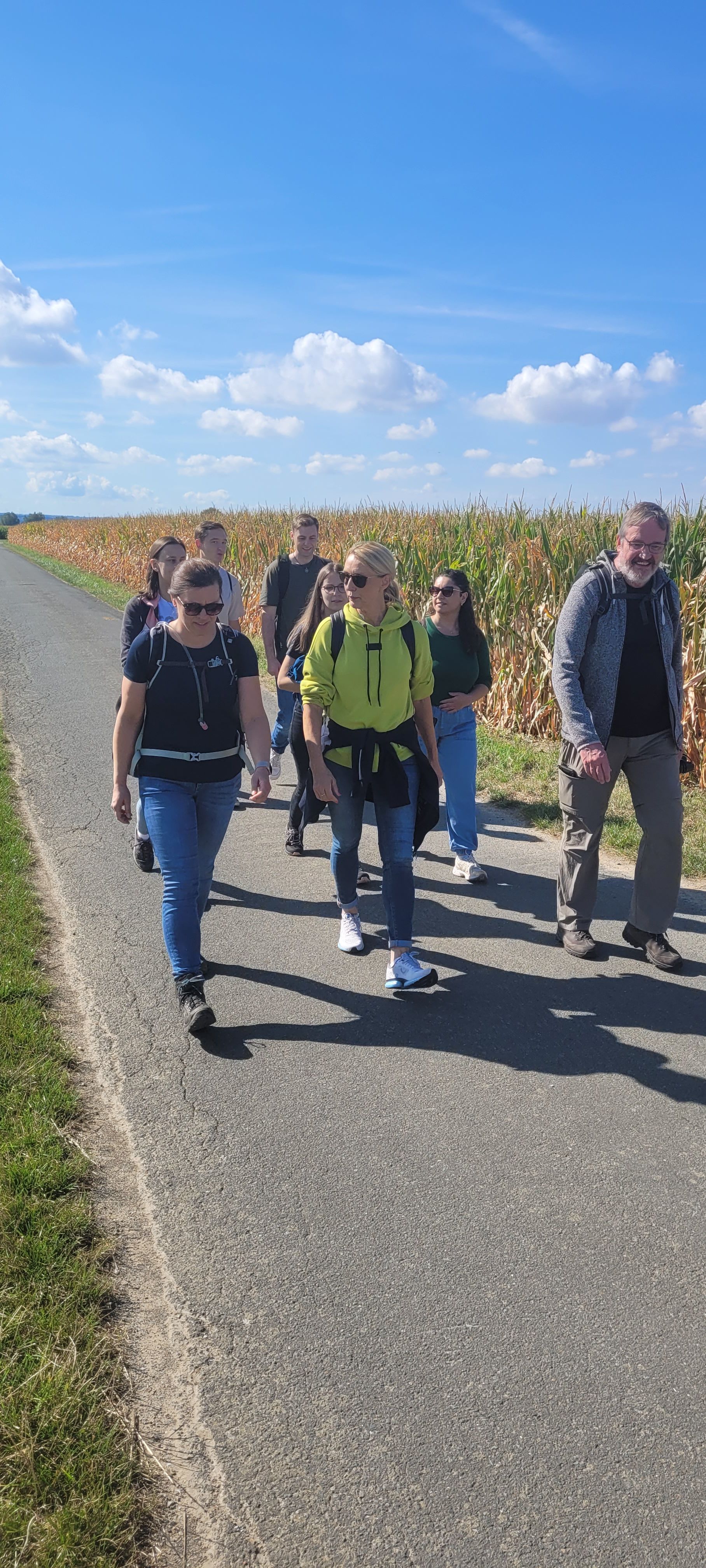 Zu zehnt hatten wir uns auf den zweiten Pilgerweg der Hoffnung im Heiligen Jahr 2025 gemacht. Wir trafen uns am Bahnhof in Salzkotten und machten uns mit kleinen Impulsen zur Schöpfung auf den Weg zum Vaußhof in Scharmede. Es war ein Geschenk, bei strahlendem Sonnenschein durch die Schönheit und Weite der Natur laufen zu können und dabei im lebendigen Austausch zu sein. Auf dem Vaußhof angekommen, empfingen uns Anja und Marius mit einigen ihrer Kinder mit einer leckeren Gulasch- und Kürbissuppe. Schnell waren wir im lebendigen Austausch über nachhaltiges Leben, Wirtschaften und Arbeiten. Der Ort, an dem wir aßen, eine alte Deele mit einem beeindruckenden Pflasterboden aus Fischgrätenmuster – Handarbeit – uralt. Hier begegneten sich Vergangenheit, Gegenwart und – im bewussten Umgang mit den Gaben der Schöpfung – Zukunft. Nach dem Mittagessen ein Gang durchs gut sortierte Hof-Café und dann ging’s aufs Feld, wo wir beim Kartoffellesen halfen. Die sauberen Kartoffeln aus dem Trockenen, sandigen Boden „ernten“ zu dürfen, ein echtes Glücksgefühl. Danach ging Marius mit uns durch die Weite des Geländes, erzählte von der Geschichte des Hofes und von der SoLawi Vaußhof e.G., einer eingetragenen Solidarischen Genossenschaft. Als wir schließlich an einer großen Kuhweide standen, ließ uns Hedwig, eine Tochter von Marius und Anja wissen: „Und dort hinten, der schwarze Bulle, der heißt Klara und die Kuh daneben ist Hedwig, meine Lieblingskuh!“ Beeindruckt von all dem, was in den vergangenen zwei Jahrzehnten gewachsen war, kamen mir innere Bilder aus Vidovice ins Herz. Dort war Marius im Jahr 1996 mit uns im ersten Aufbaucamp gewesen und mit einer Träne im Auge teilte er mit uns: „Wisst ihr, dieses Camp damals, das war für mich ein Meilenstein im Leben. Irgendwie fehlte bei einem der vielen Bullis, mit denen wir nach Bosnien gefahren sind, ein zweiter Fahrer. Und dann sagte Meinolf zu mir: ‚Das kannst du doch machen - oder?‘ Dieser Augenblick, in dem mir so viel Vertrauen entgegen kam, hat etwas in mir geboren werden lassen, was ich zeitlebens nicht verloren habe: Mut.“