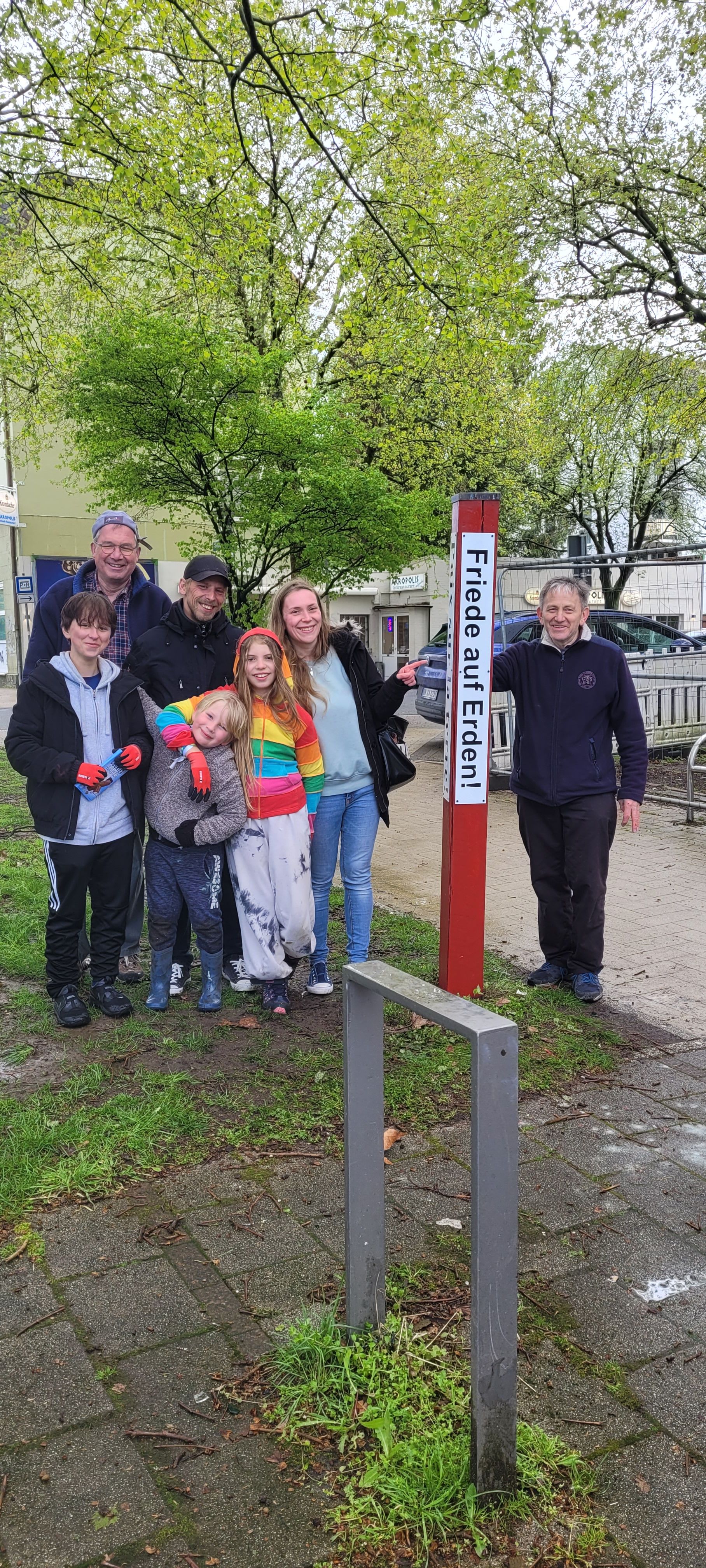 Unter dem Motto „FRIEDEN – DU machst den Unterschied!“ haben sich Jugendliche aus dem go4peace-Netzwerk in Kamen am vergangenen Wochenende an der 72-Stunden-Aktion des BDKJ beteiligt. Am Donnerstag-Abend trafen sie sich für eine Stunde in der Kirche Heilige Familie und erzählten an sechs verschiedenen Orten von ihren eigenen Glaubensgeschichten. Es waren sehr persönliche und bewegende Augenblicke. Am Freitag wurde – dem Regen zum trotz – wenn auch ein wenig verspätet, der Friedensmahner vor dem Rathaus renoviert. Als die Gruppe am frühen Abend um den Friedensmahner stand und für den Frieden in der Welt betete, sagte Lukas, mit sieben Jahren der jüngste Teilnehmer: „Ich wünsche mir, dass überall auf der Welt Menschen wieder Ruhe finden und genug zu essen haben!“ Am Samstag transportierten die jungen Friedensengagierten einen Friedensmahner nach Methler. In der Kirche St. Marien wurde er unter dem Beisein von über 100 Kindern und Eltern der KiTa St. Marien gesegnet. Zuvor brachte das Team der KiTa in einem Theaterspiel auf den Punkt: Stärke, Schönheit, Macht und Reichtum verhelfen oft weniger zum Frieden als ein frohes Herz. So erinnert der Friedensmahner, der anschließend vor der KiTa errichtet wurde, alle Vorbeigehenden daran, mit dem eigenen Herzen in Frieden zu leben, um selber Frieden stiften zu können. Kaffee, Waffeln und Kuchen rundeten dann die kleine Feier ab, zu der das Koordinationsteam des BDKJ Unna eigens angereist war. Am Sonntag wurde dann eine der Teilnehmer*innen – 14-jährig – getauft. Sie hatte sich das Lied „He’s got the whole world in his hands“ gewünscht. An der Atmosphäre während der Tage war zu spüren: Wir sind nicht allein unterwegs. Der verborgene Gott gesellt sich dort spürbar zu uns, wo wir dem Frieden eine Chance geben. – Danke all den Jugendlichen und Älteren, die diese besonderen Tage möglich gemacht haben.