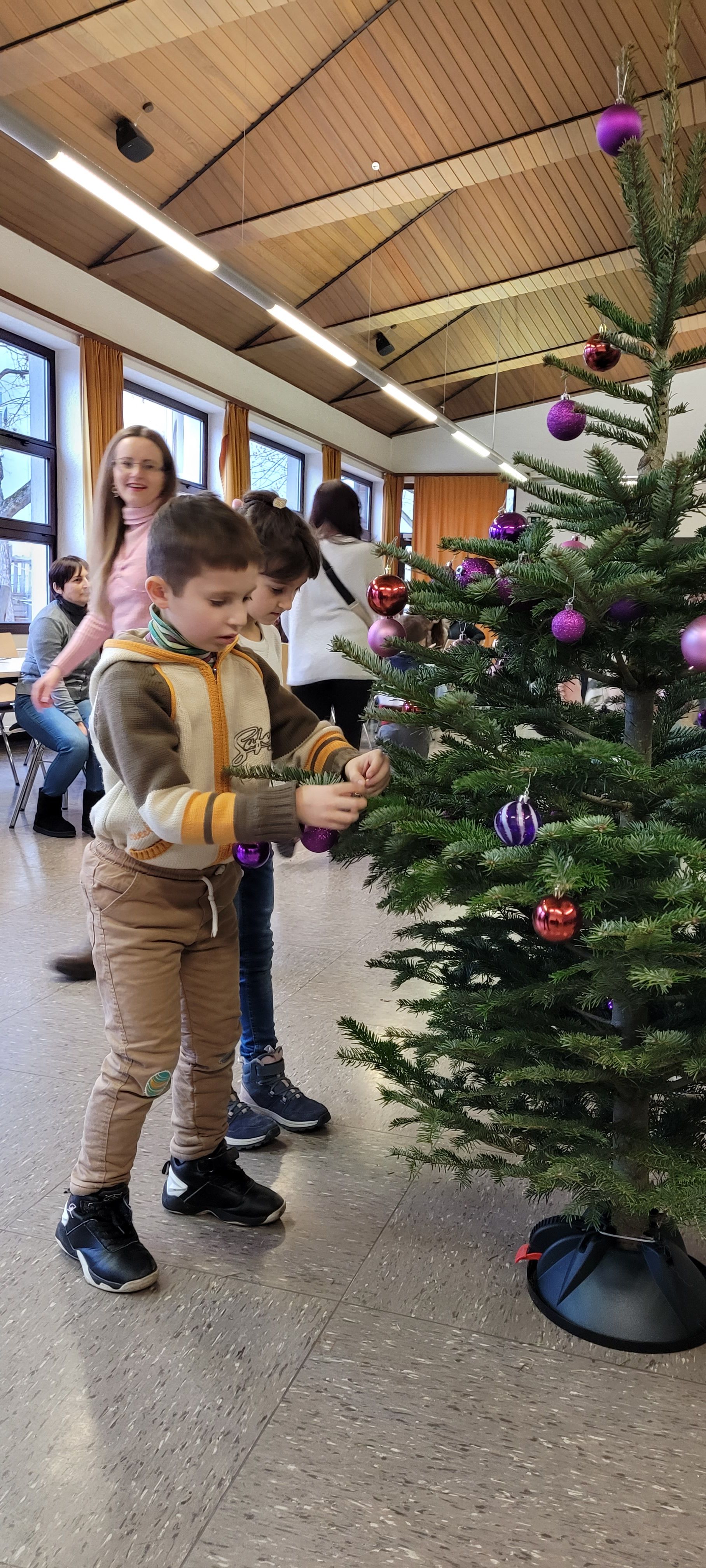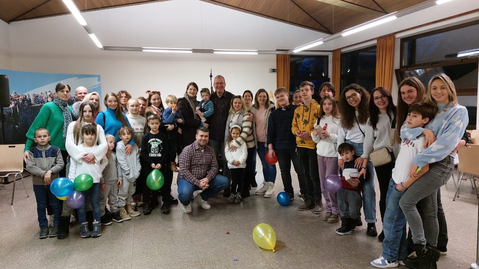 Am Vorabend des Nikolaustages in orthodoxer Tradition trafen sich auf Einladung von go4peace 45 ukrainische Kinder mit ihren Eltern im Gemeindezentrum Heilige Familie zu ihrem Nikolaustag. Die mitreißenden Moderatoren Yulia und Stas halfen den Kindern für zwei Stunden lang, ihren Alltag zu vergessen und in unbeschwerter Freude zu verbringen. In einem Nikolauswettstreit wurde ein Weihnachtsbaum geschmückt, reichlichst Christstollen, von Magdalene Beule gebacken, von den Kindern verzehrt und als sich am Ende der Veranstaltung der Nikolaus persönlich sehen ließ, wollte sich jedes Kind mit ihm fotografieren lassen. Natürlich gab es für jedes Kind auch einen echten Schokoladen-Nikolaus vom Netzwerk go4peace. „In 45 strahlende Kinderaugen schauen zu dürfen, war der schönste Augenblick des Tages für mich!“ resümierte Meinolf Wacker am Ende der Veranstaltung.