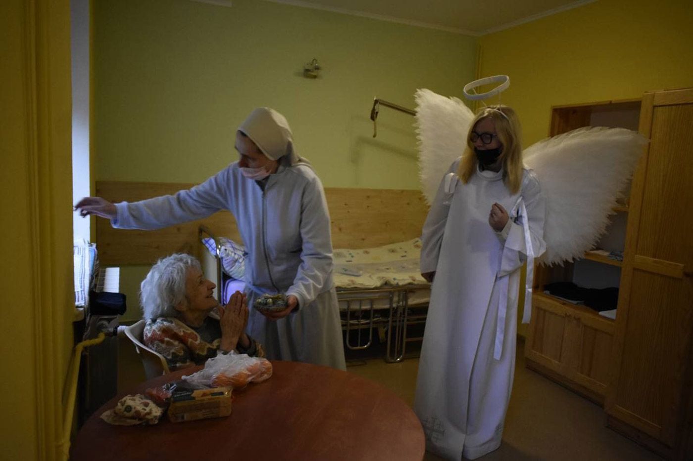 Olena Noha von der Caritas-Spes in Kyiv erzählte uns in einem Telefonat von einem Altenheim in Olexandriwka, das von der Caritas-Spes verantwortet und geleitet wird. Dort leben 15 Personen im Alter zwischen 54 und 96 Jahren, 13 Frauen und zwei Männer. Da die Rente, die in der Ukraine gezahlt wird, zwischen 60 – 100 € im Monat liegt, sind all diese Menschen verelendet, ehe sie im „Haus der Barmherzigkeit“ aufgenommen worden sind. Dort kümmern sich eine Ärztin, zwei Pflegekräfte und Ordensschwestern um die Bewohner*innen. Da keine staatliche Hilfe fließt, wird das Haus allein aus Spenden finanziert. 500 € werden pro Bewohner*in monatlich für Pflege, Unterkunft, Essen benötigt. Ganz vorsichtig fragte Olena mich, ob wir eine der Personen in unsere Obhut im go4peace-Netzwerk nehmen könnten. Den Motto folgend „Gott sehnt sich nach uns. Er kommt als Mensch, der deine Hilfe braucht.“ haben wir JA gesagt.