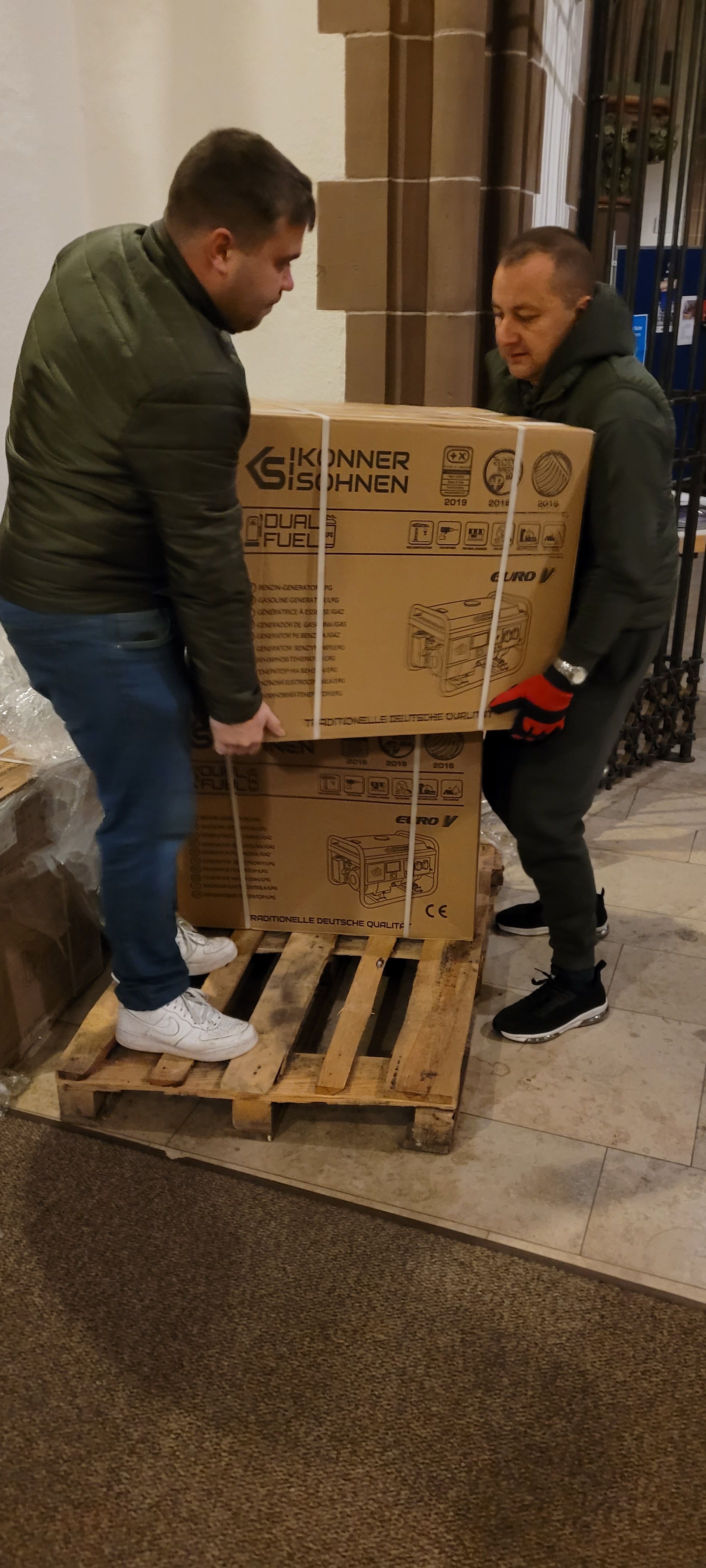 Die zehn Stromgeneratoren wurden am Mittwoch, dem 07.12.2022 in Kamen von einem ukrainischen Unternehmen abgeholt. 93 Weihnachstpakete für ukrainische Familien gingen mit auf den Weg. Die benötigten Spendemittel sind bereits eingegangen. Wir freuen uns, damit auch die 4. Spendenaktion für die Ukraine erfolgreich abgeschlossen zu haben. Hier einige Foto-Eindrücke: