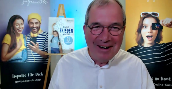 - Schick am Ende eurer Zeit für den Frieden ein Wort des Dankes (z.B. Thanks for the shared time for peace) an deinen Friedenspartner. Wenn ihr vorher Eure WhatsApp-Nummern ausgetauscht habt, könnt ihr das auch über euer Handi machen.