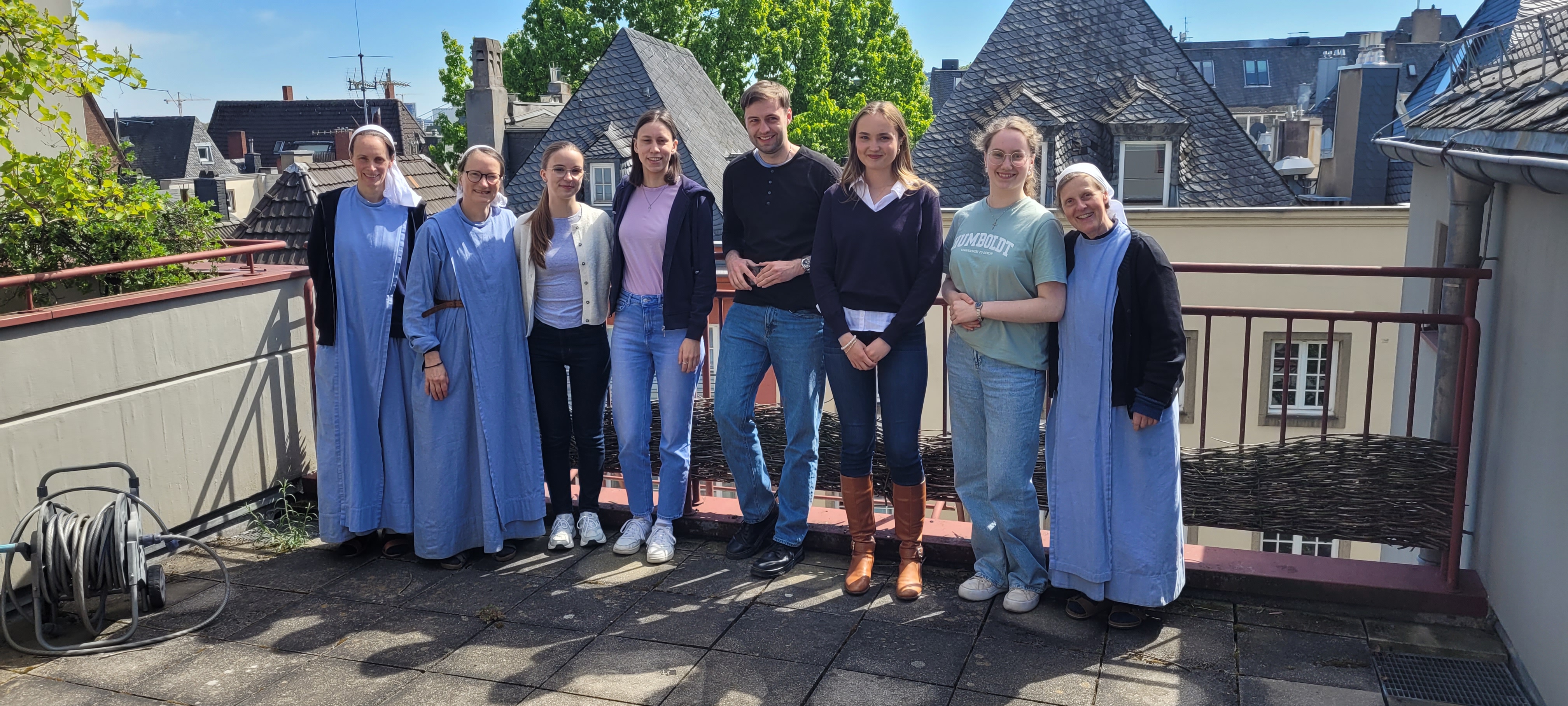 Sechs Pilger und Pilgerinnen auf dem Weg nach Jerusalem, nein nicht zu der alten biblischen Metropole in Israel, sondern zur Gemeinschaft „Jerusalem“ in Köln. Seit 17 Jahren leben dort fünf Schwestern in Groß Sankt Martin und halten – mitten in der Pary-Meile von Köln - in der alten romanischen Kirche das Geheimnis Gottes lebendig offen. Drei Mal am Tag treffen sie sich in der Kirche zum Stundengebet und abends zur Eucharistiefeier. Und immer schauen Menschen unterschiedlichster Couleur vorbei, um als Tourist die Schönheit der romanischen Kirche zu erleben, um einen kurzen Augenblick in der Stille dieser Kirche zu verweilen, um ein Gespräch zu suchen oder um an der Liturgie teilzunehmen.