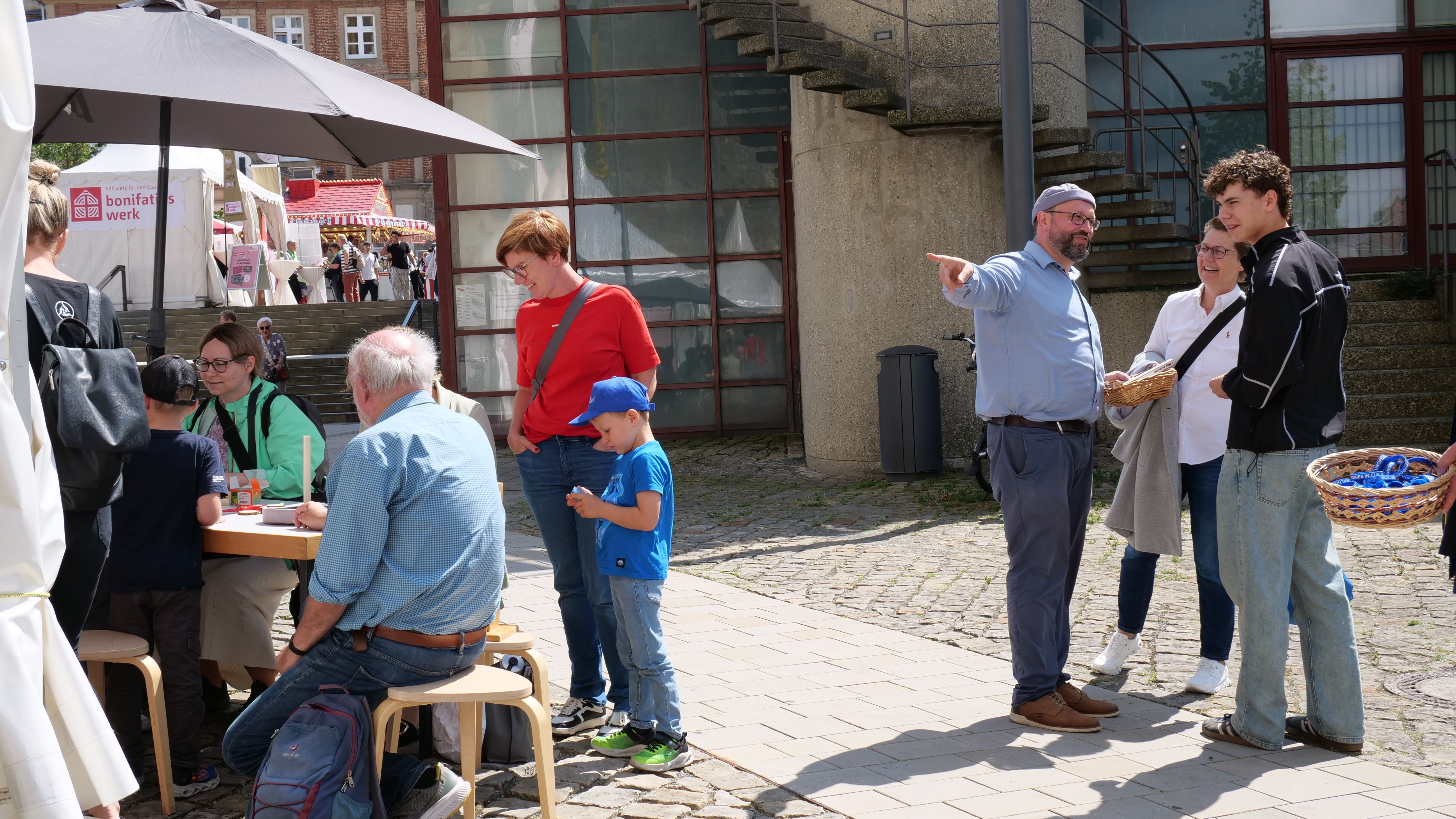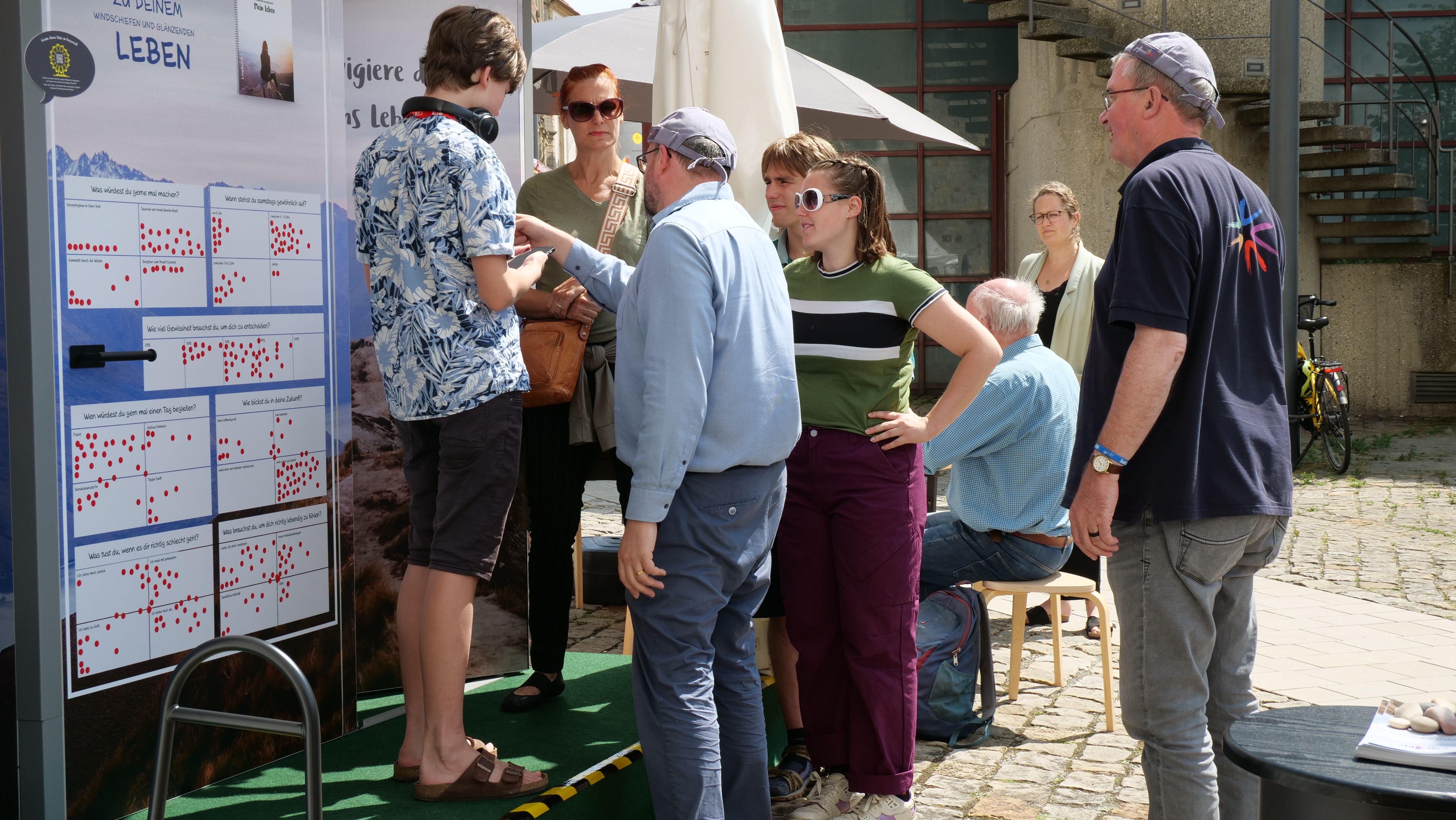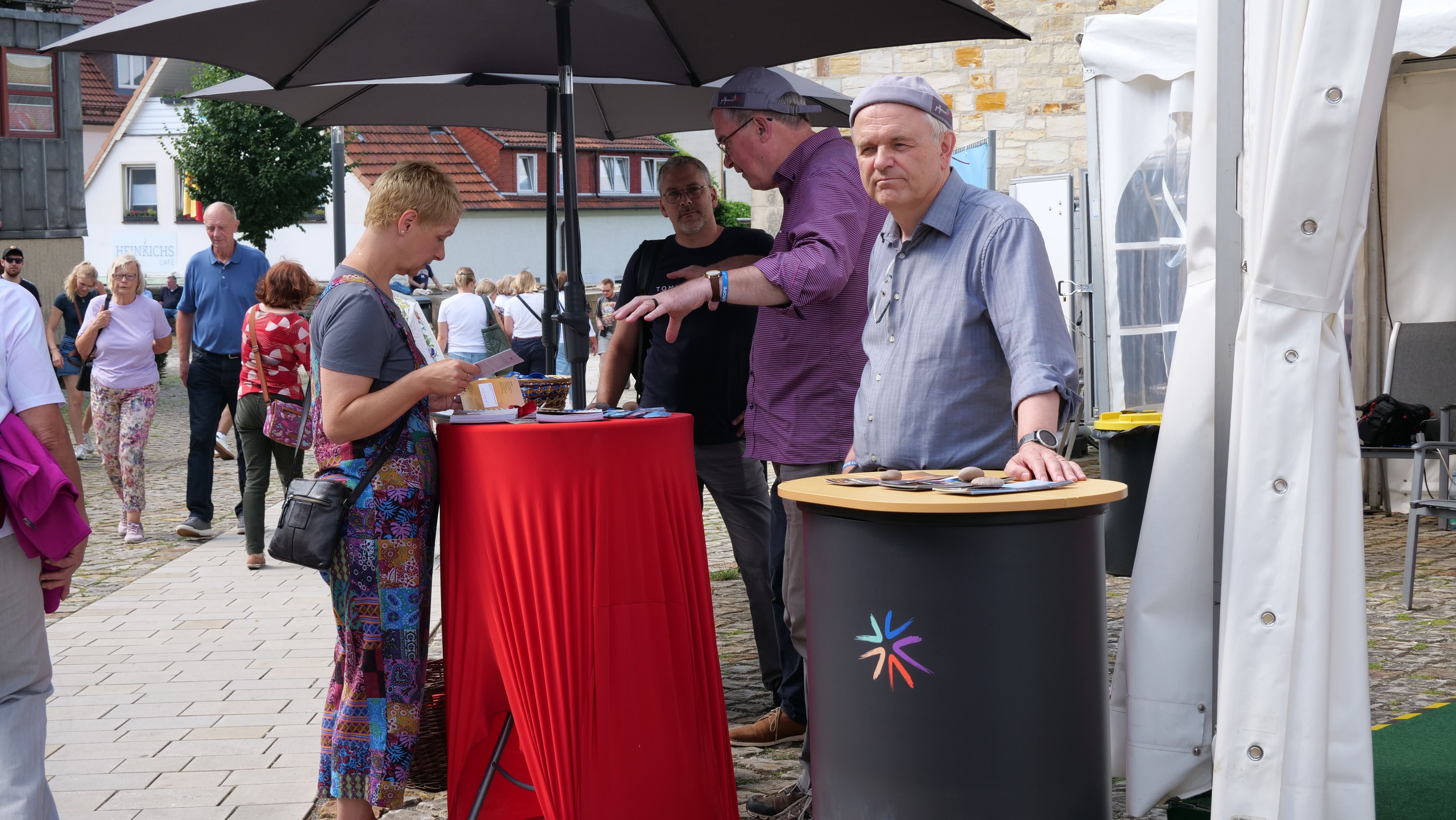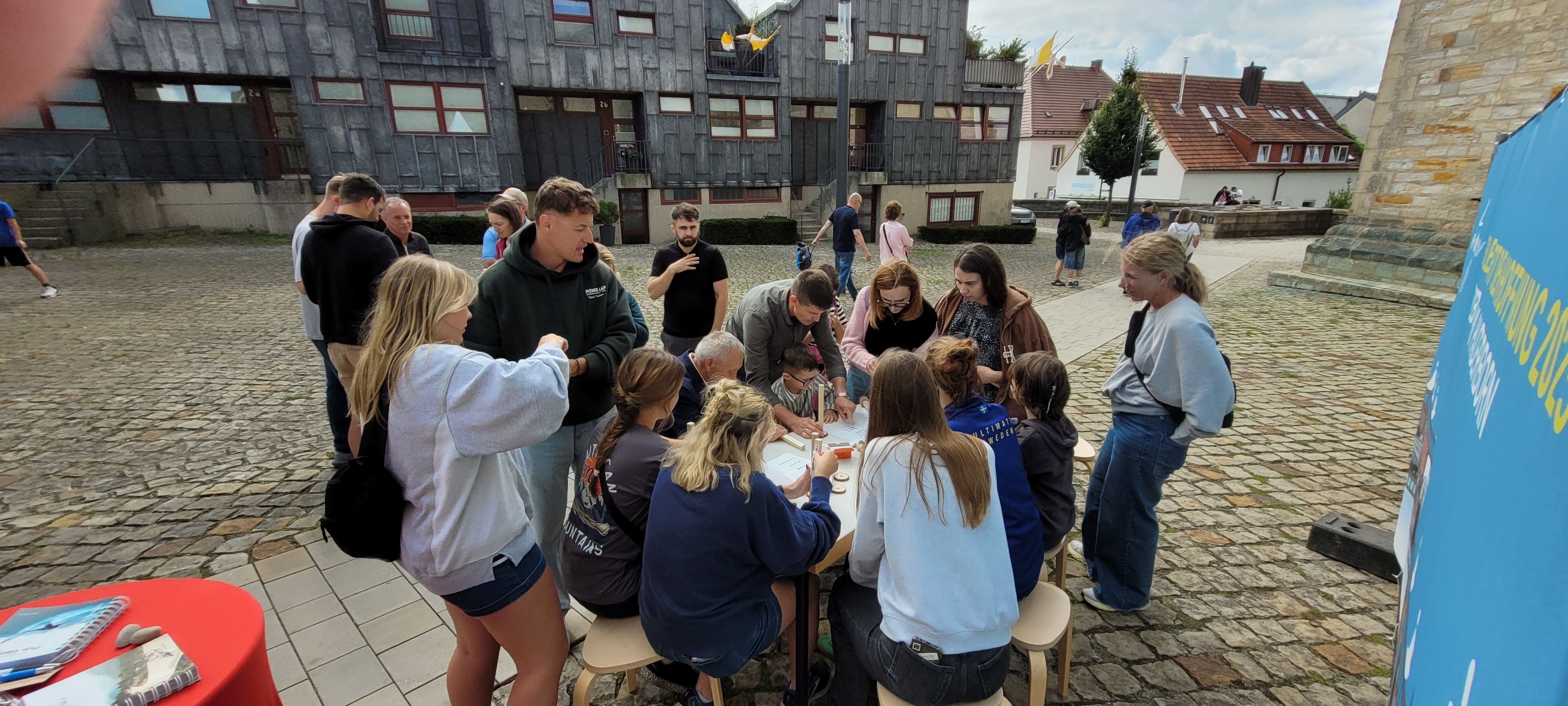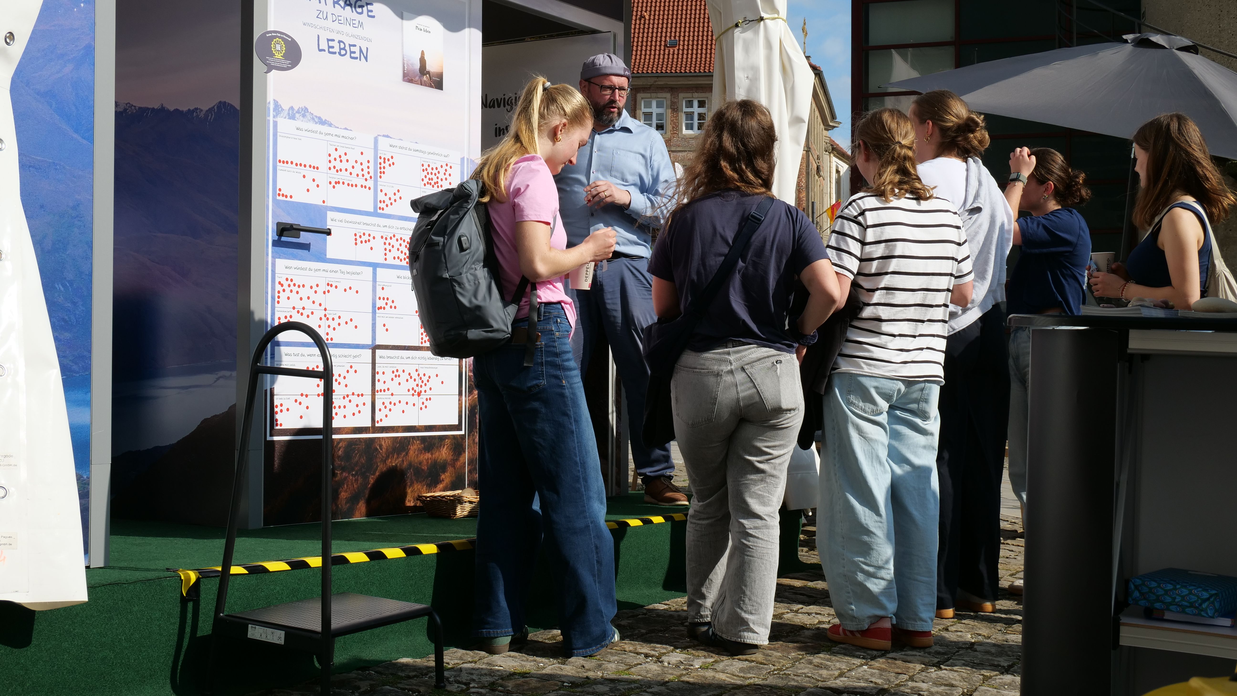 We were at the Cathedral Tower in Paderborn during the Libori festival (July 26 – August 3, 2025) with the experience course “navi4life – Navigate Yourself into Life!”. Archbishop Dr. Udo Markus Bentz smiled and said: “You are really standing in the wind here!” Yes, it is the windiest corner of the Cathedral – and many Libori pilgrims were “blown” past us. More than 180 young people, adults, and also children already walked the 10-minute course and were excited. A young woman said: “I found my way! – You really encouraged me. Keep going!” A priest added: “This is not only for young people – I also got new ideas for my life.” A superintendent said after walking through the four rooms with his wife: “You created a place here at the Libori festival where people can think about their own life. Impressive. Thank you!”