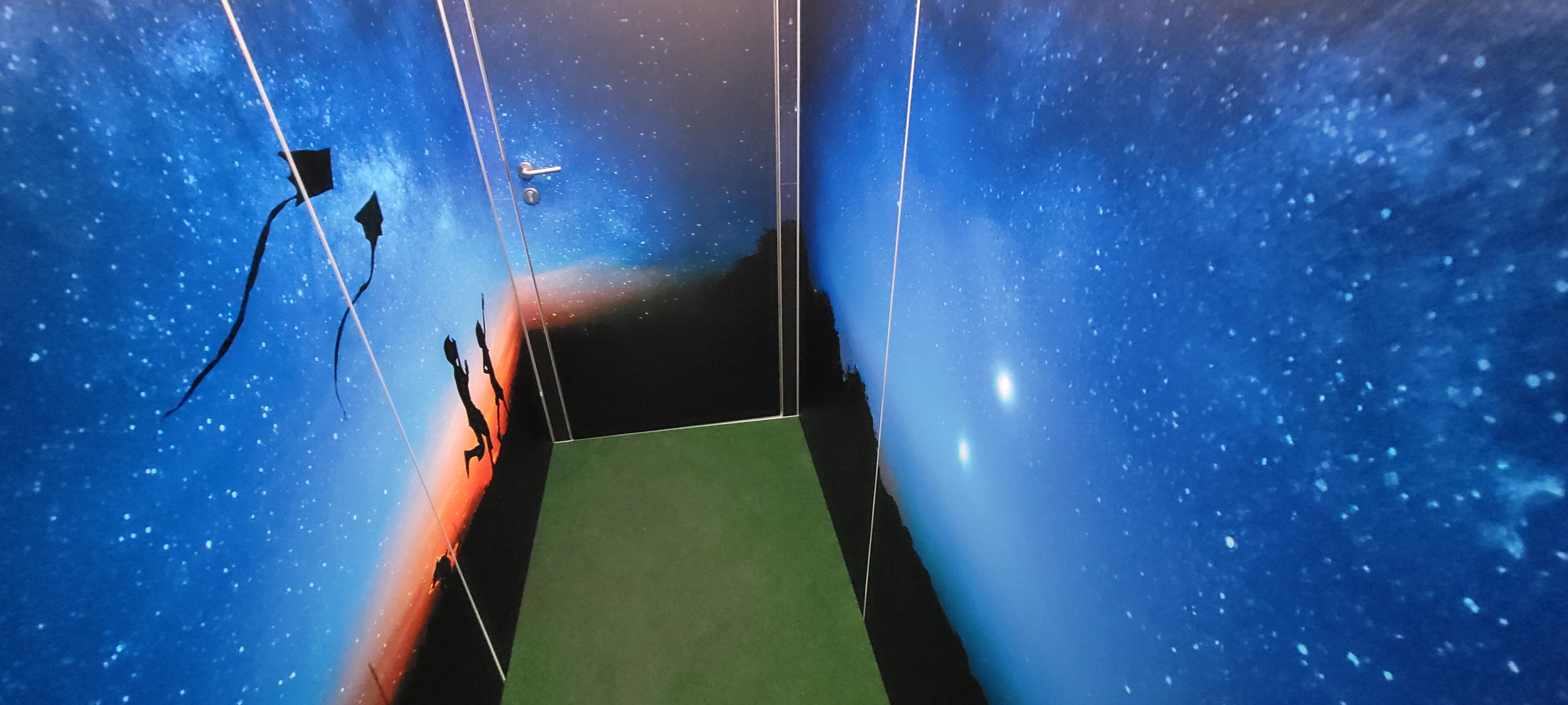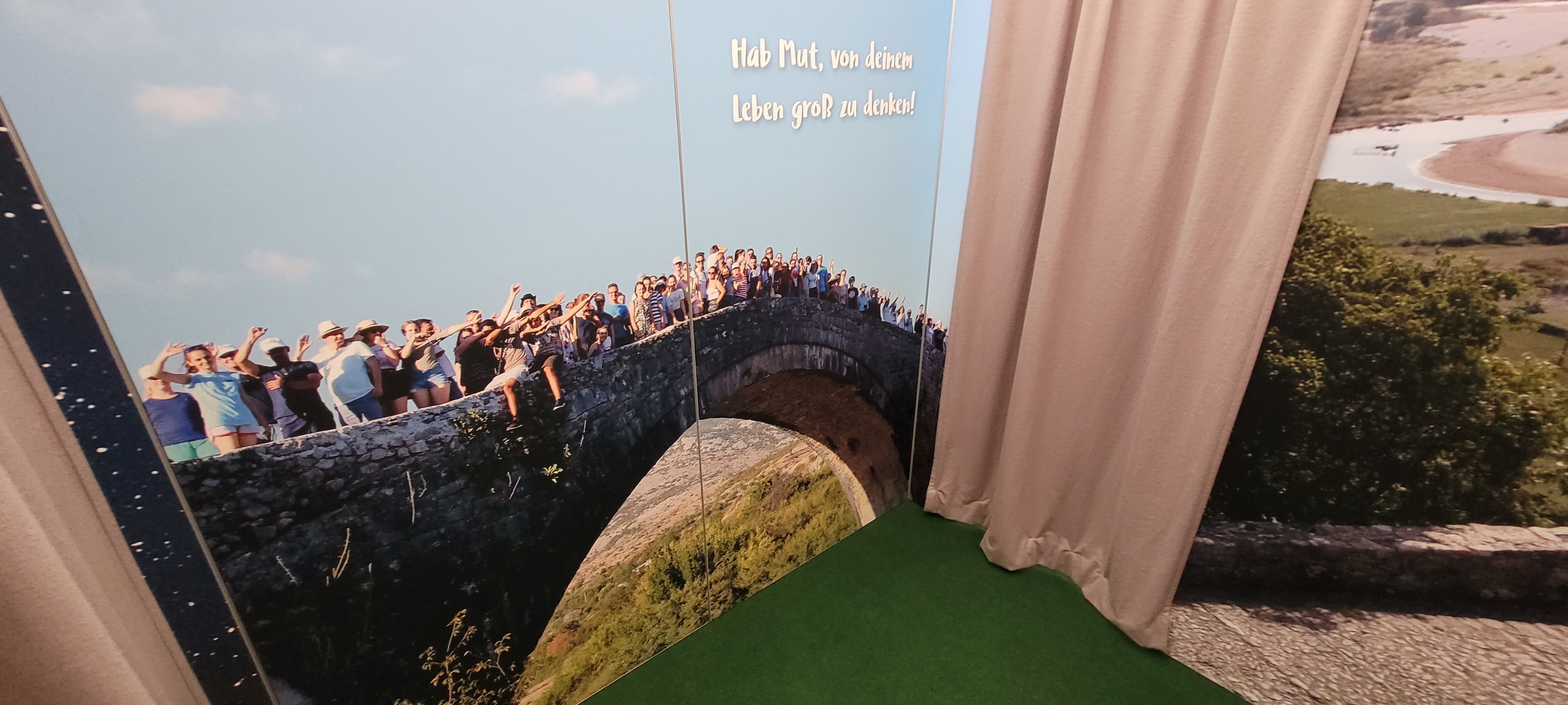 View of the navi4life "experience parcours": Several walk-in rooms with large wall images, quotations, and interactive stations invite visitors to explore the ‘adventure of life’. Each visitor is guided by an audio guide on this journey.
