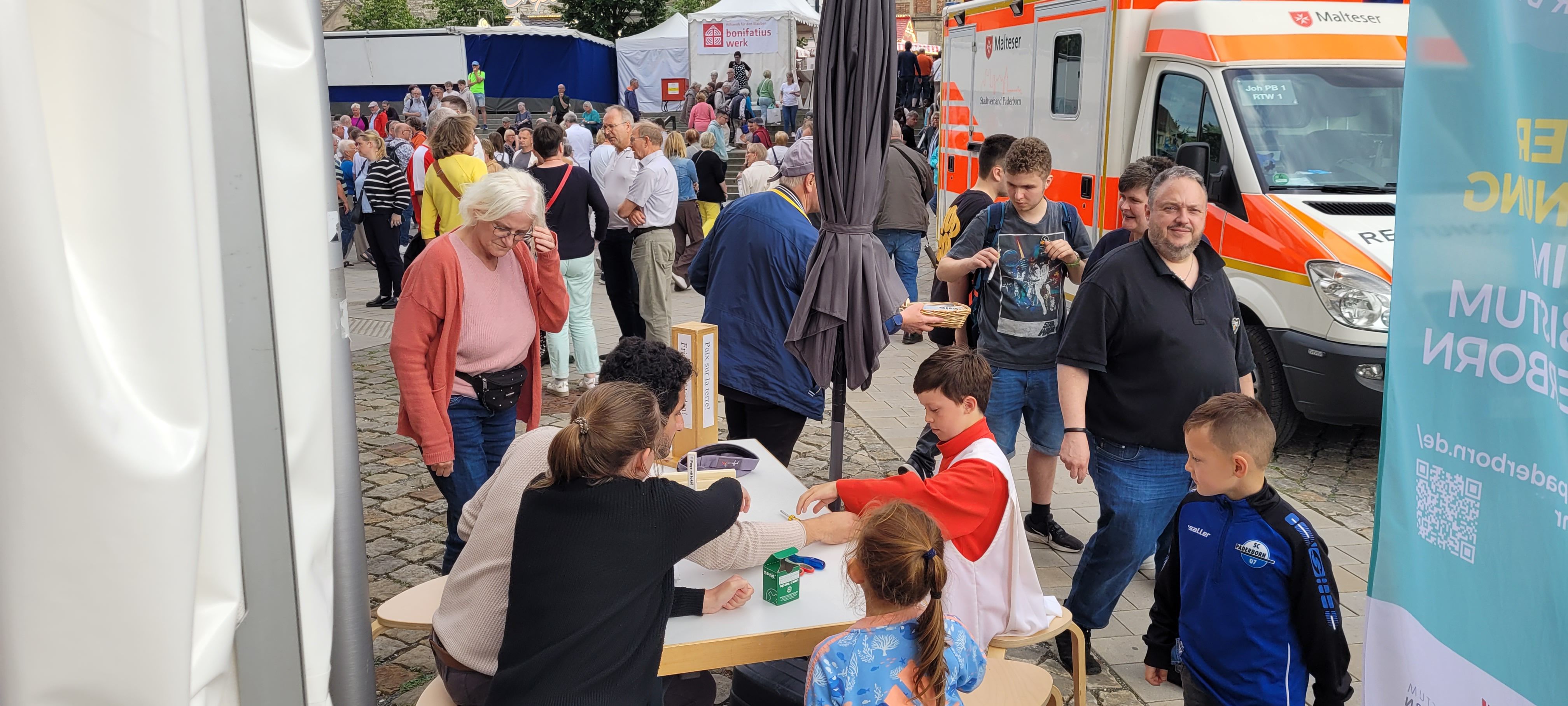 At the end of each day, we gave away a double ticket for the Ferris wheel at the Libori fair. On the first day, a girl with a physical disability won. When we called her, she cried with joy and came the next day with her friends to pick up the prize.