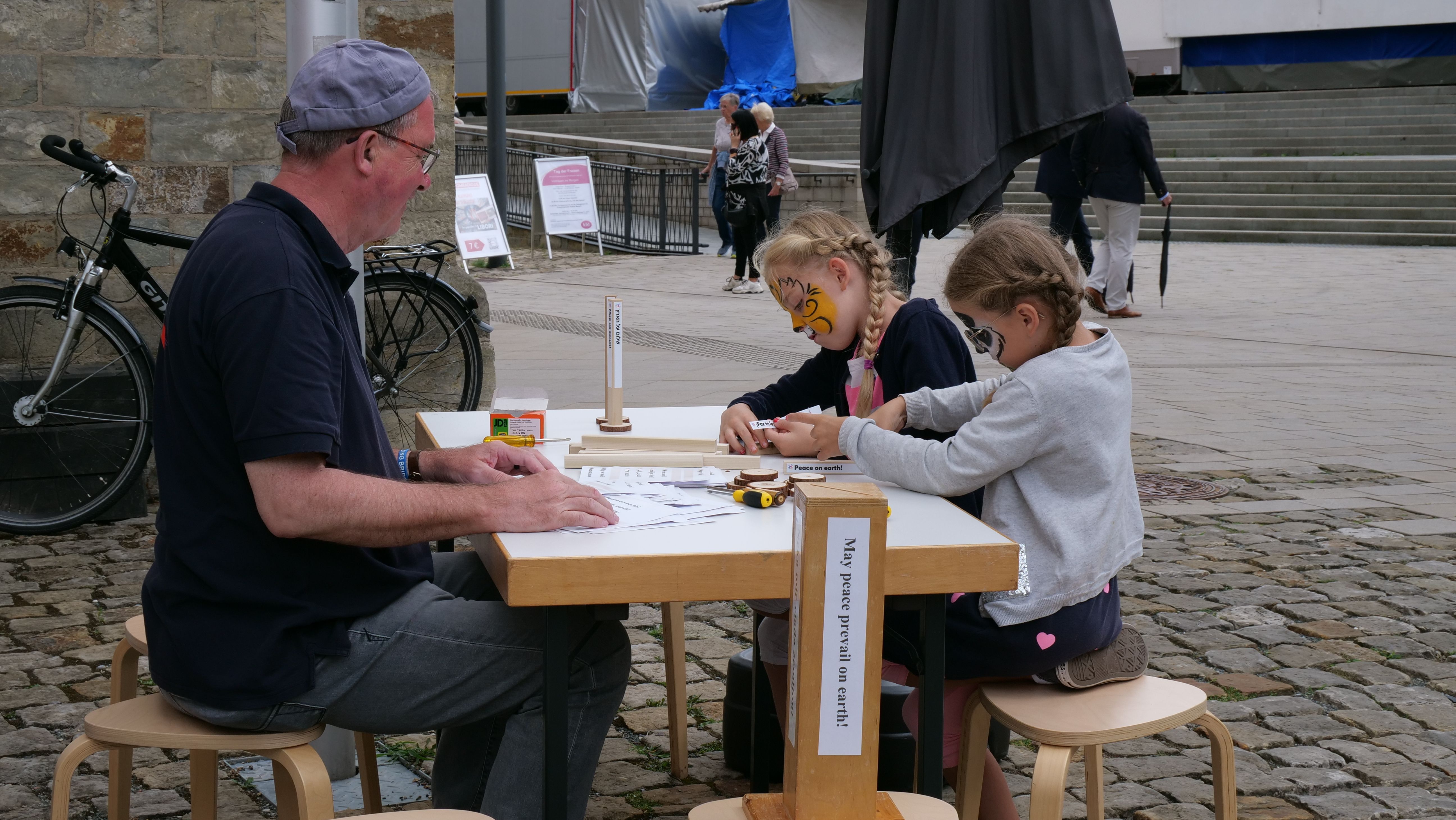 Many Libori guests said to us: “How nice that you are here again! I was already looking forward to it. It’s great that we can make little peace messengers and that you set up the course here.” – Yes, it was this inner necessity, as Yehudi Menuhin said, that moved us to be present again for nine days non-stop at Libori.