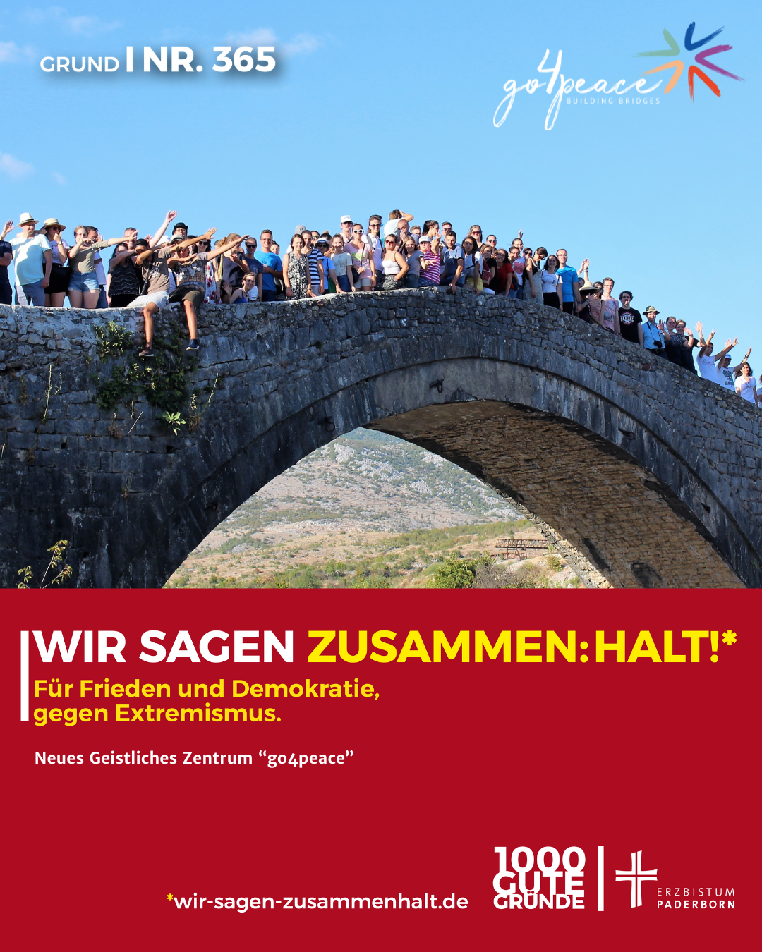Wenn die Werte unseres Zusammenlebens wieder einmal einer Belastungsprobe unterzogen werden, ist es an der Zeit, den Zusammenhalt untereinander zu stärken. Mit der Mitmach-Kampagne „WIR SAGEN ZUSAMMEN: HALT!“ setzen wir im Erzbistum Paderborn sichtbare Zeichen für Frieden, Demokratie, Menschenwürde und Nächstenliebe – und sagen „Halt!“, um Diskriminierung, Ausgrenzung und Benachteiligung zu stoppen.